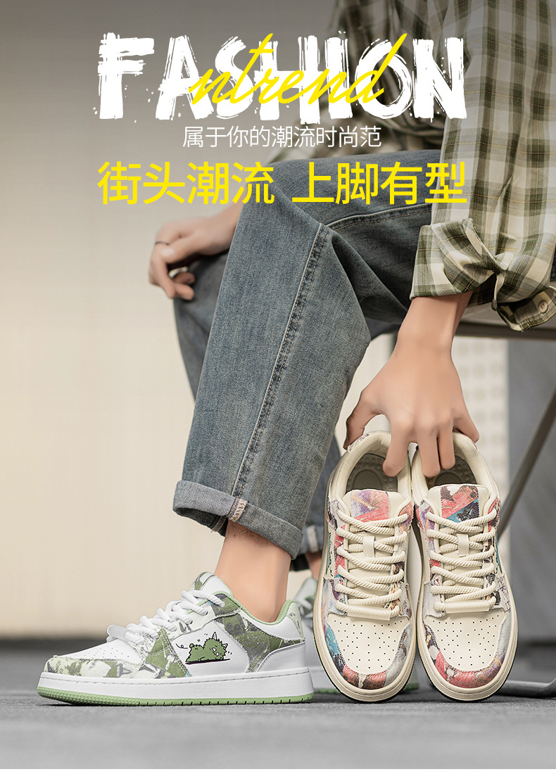남성 신발 2025 봄 새로운 패션 틈새 보드 신발 남성 대학 스타일 스포츠 캐주얼 신발 색상과 일치하는 두꺼운 바닥 편안한스토어 가기