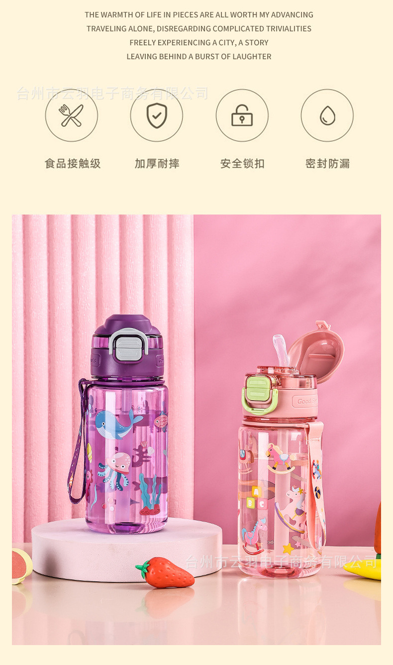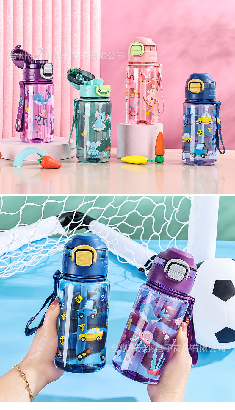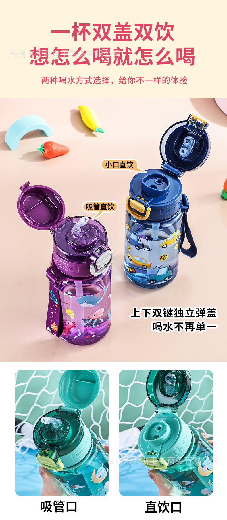 더블 음료 어린이 컵 대용량 여행 주전자 여름 야외 휴대용 스포츠 피트니스 남성 인쇄 투명 플라스틱