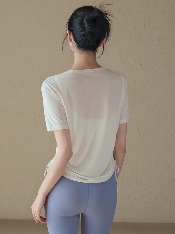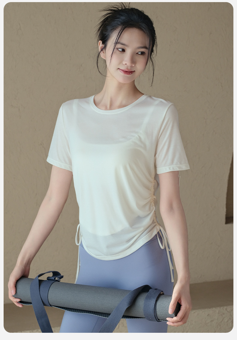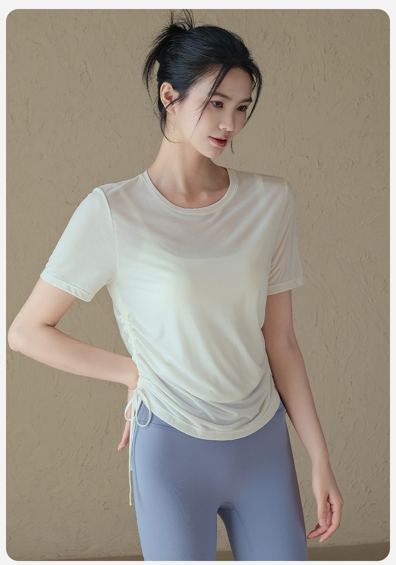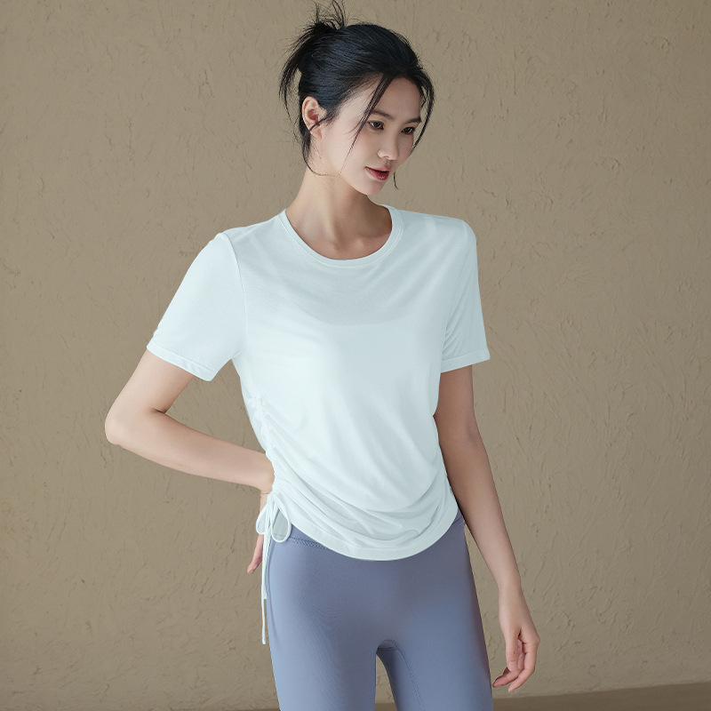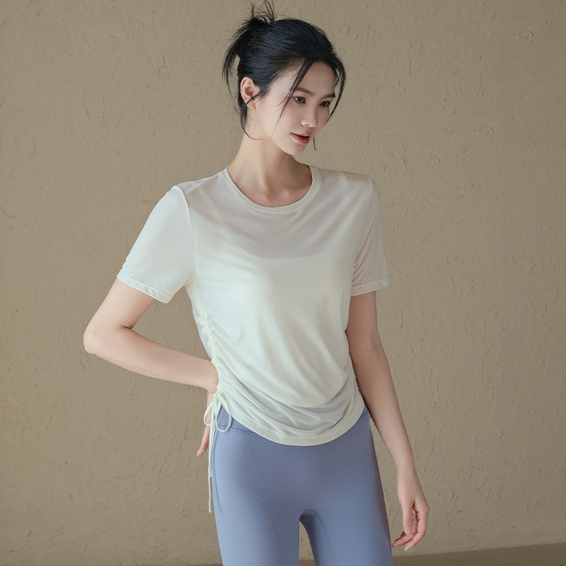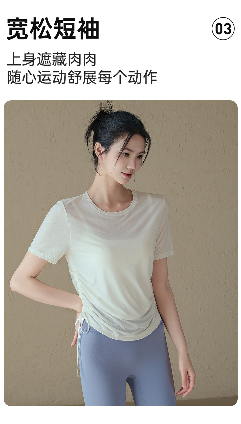 요가 의류 반팔 최고 여성 경량 통기성 피트니스 티셔츠 느슨한 슬리밍 필라테스 훈련 스포츠 블라우스 여름