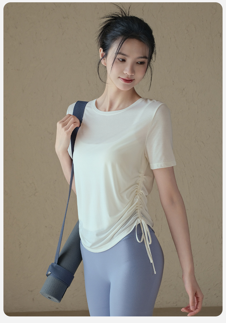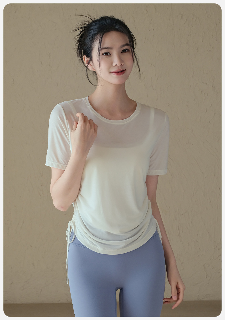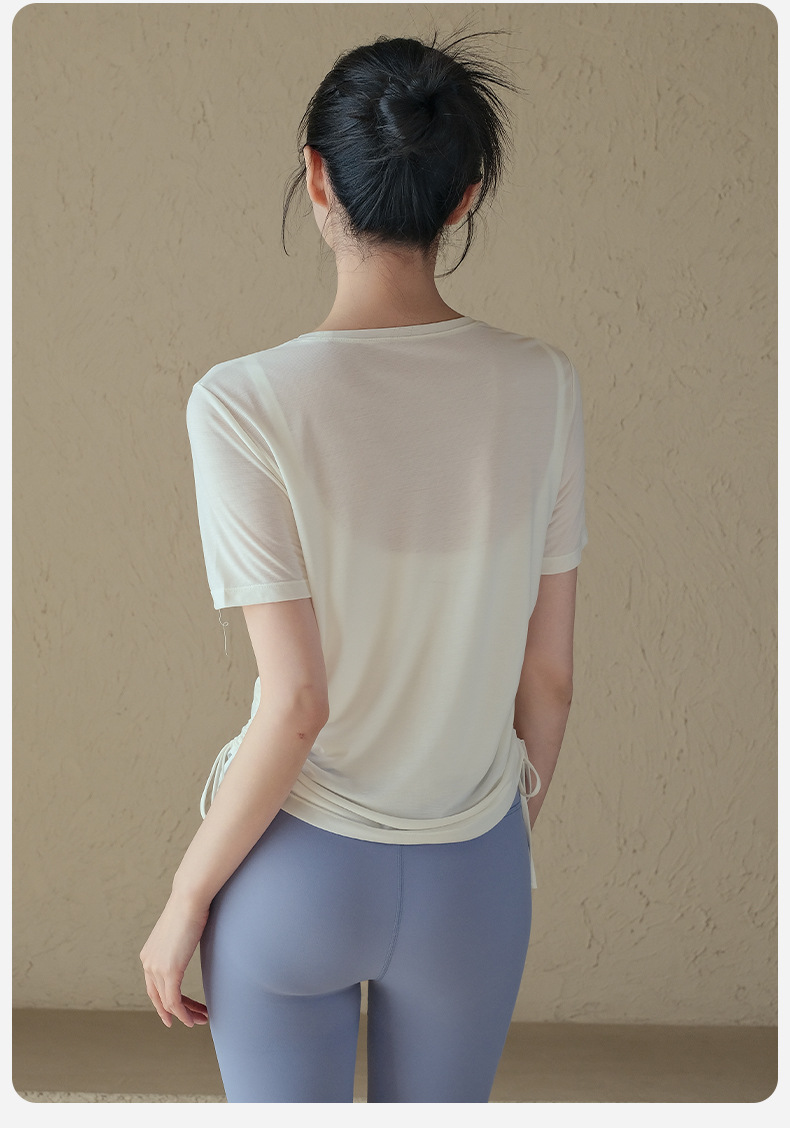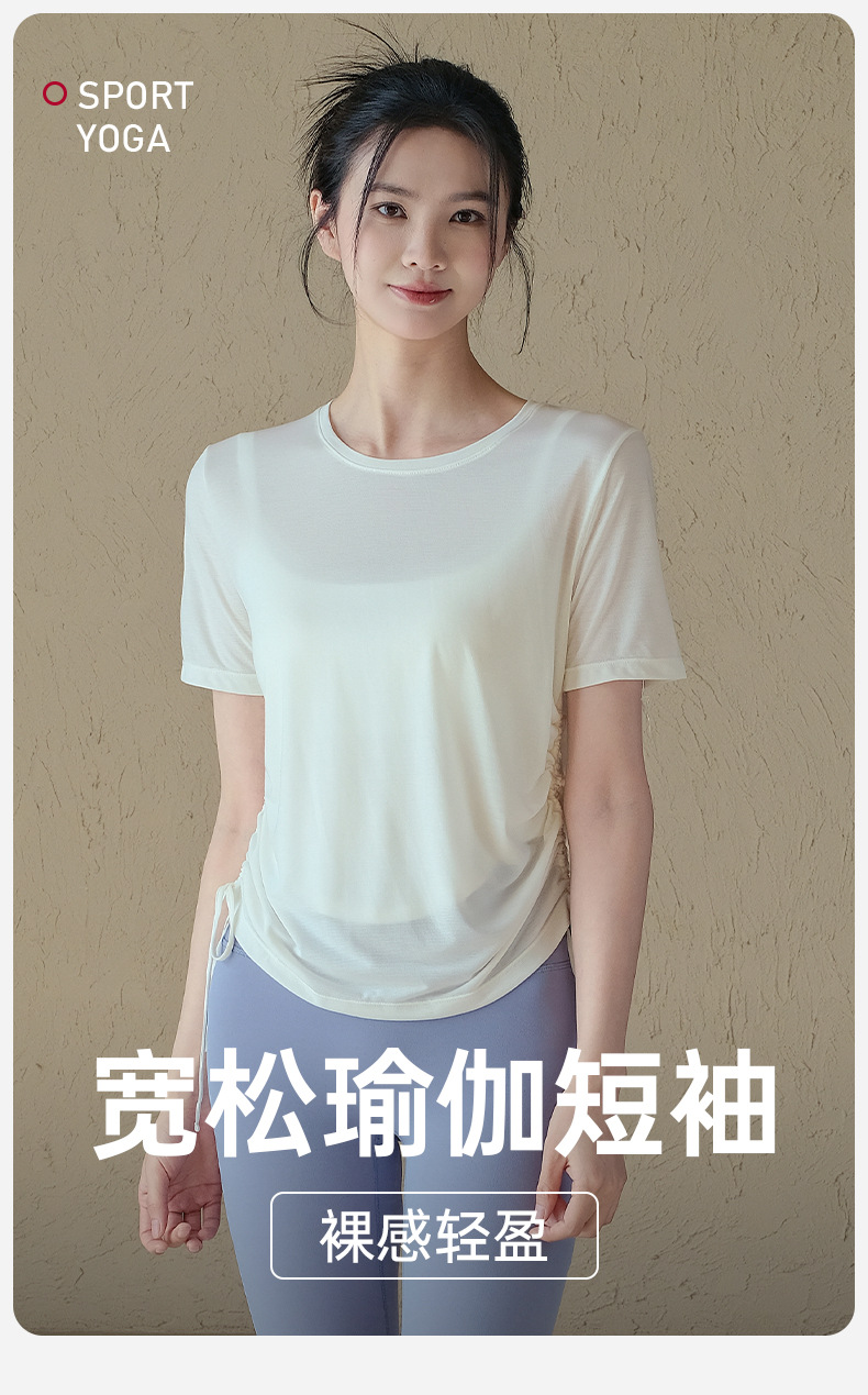 요가 의류 반팔 최고 여성 경량 통기성 피트니스 티셔츠 느슨한 슬리밍 필라테스 훈련 스포츠 블라우스 여름스토어 가기