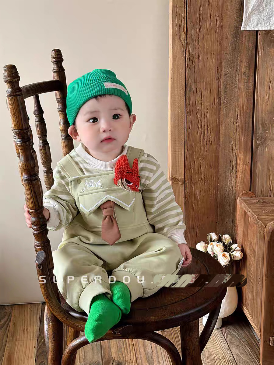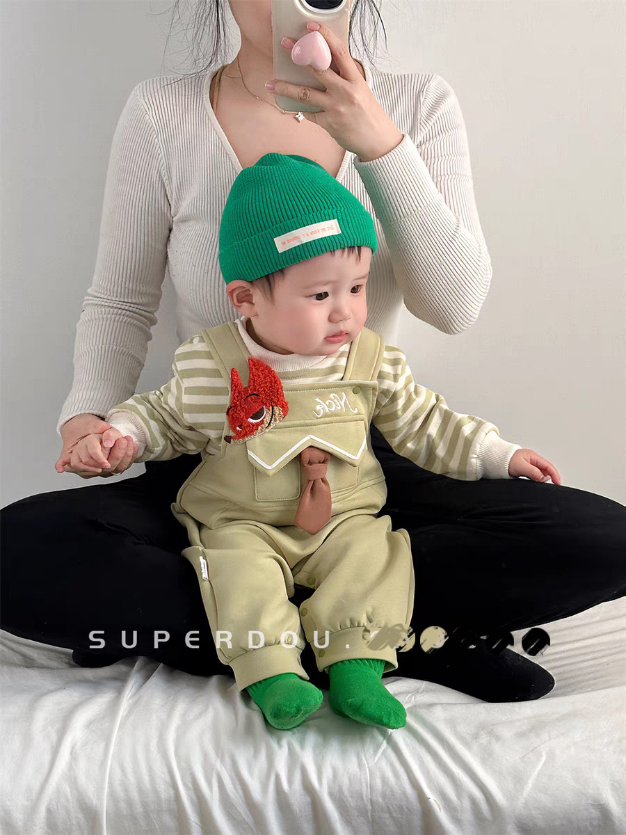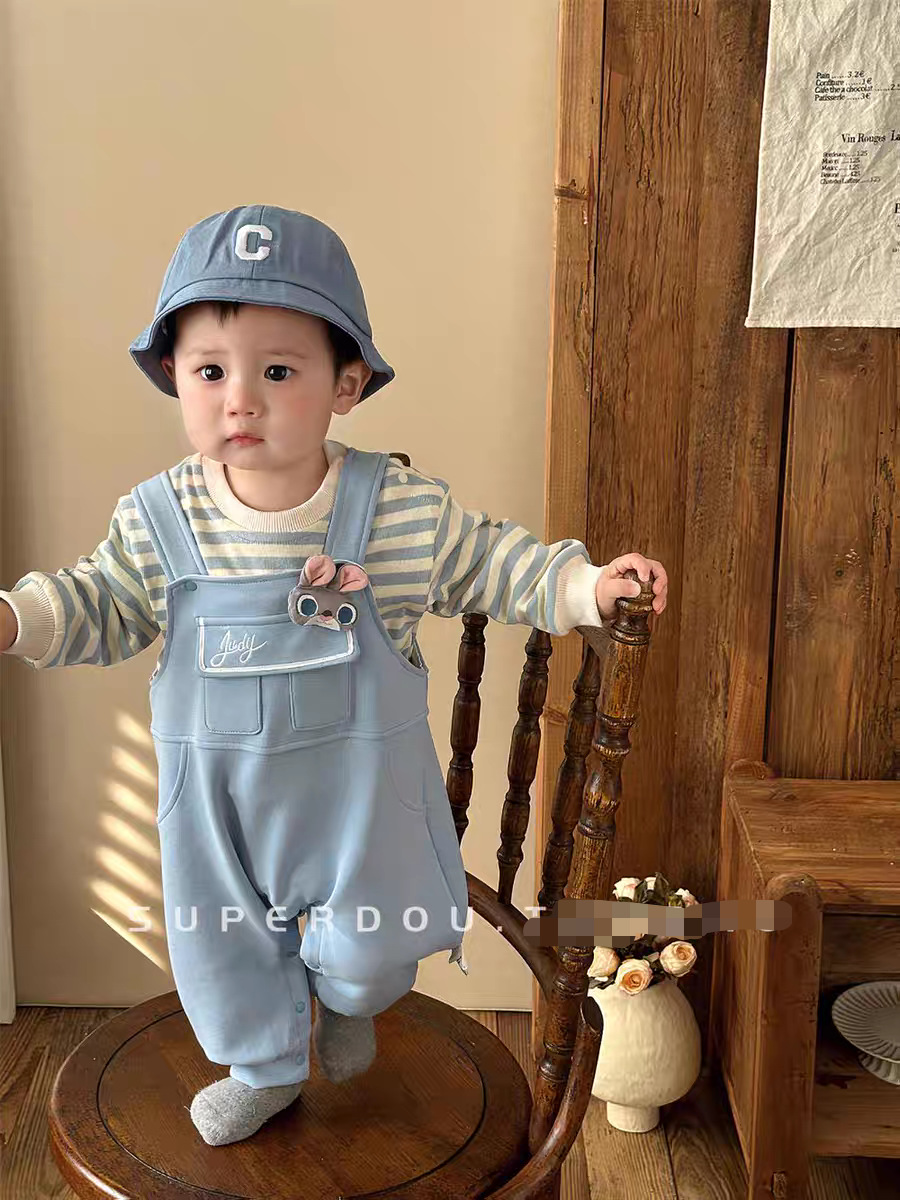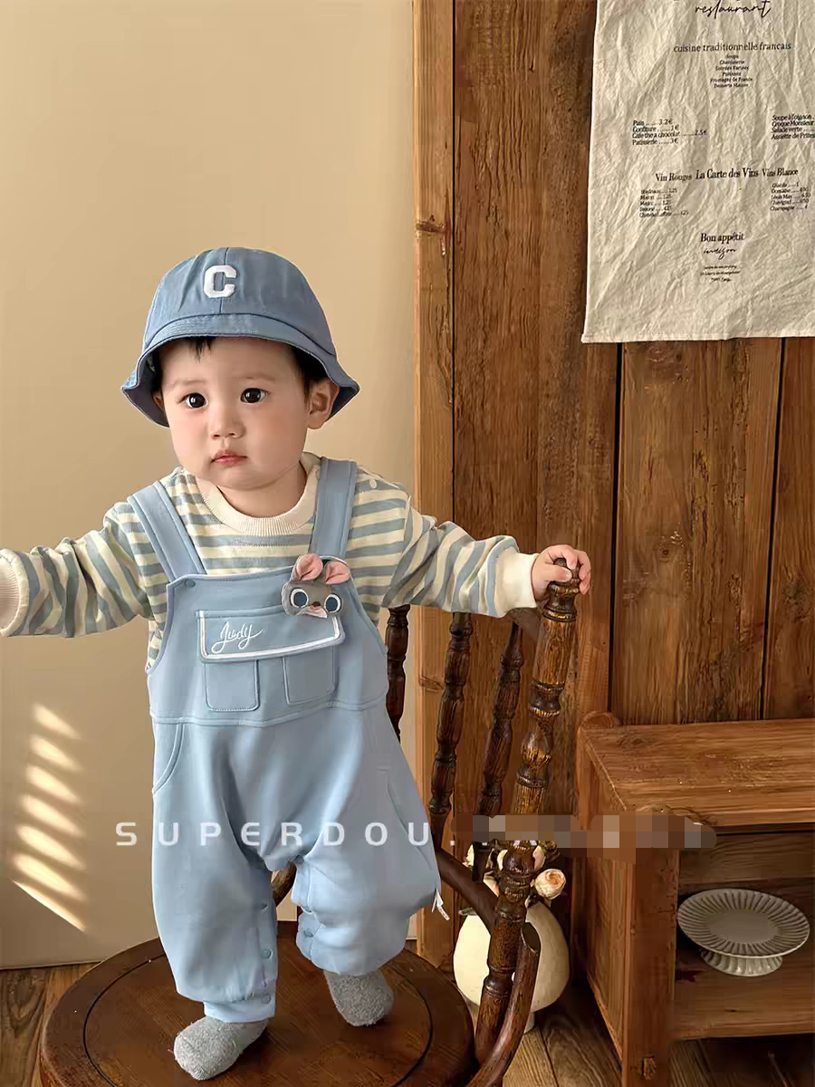 아기의 원바디 바지 봄과 가을 슈퍼 귀여운 만화 멜빵 한국식 올 매치 원바디 세트 봄 유행스토어 가기
