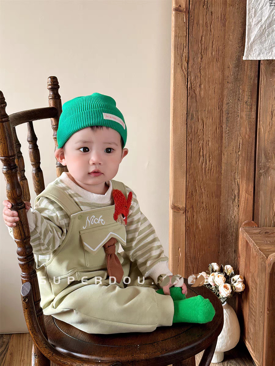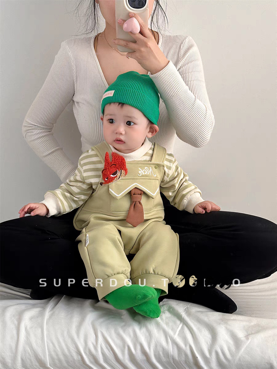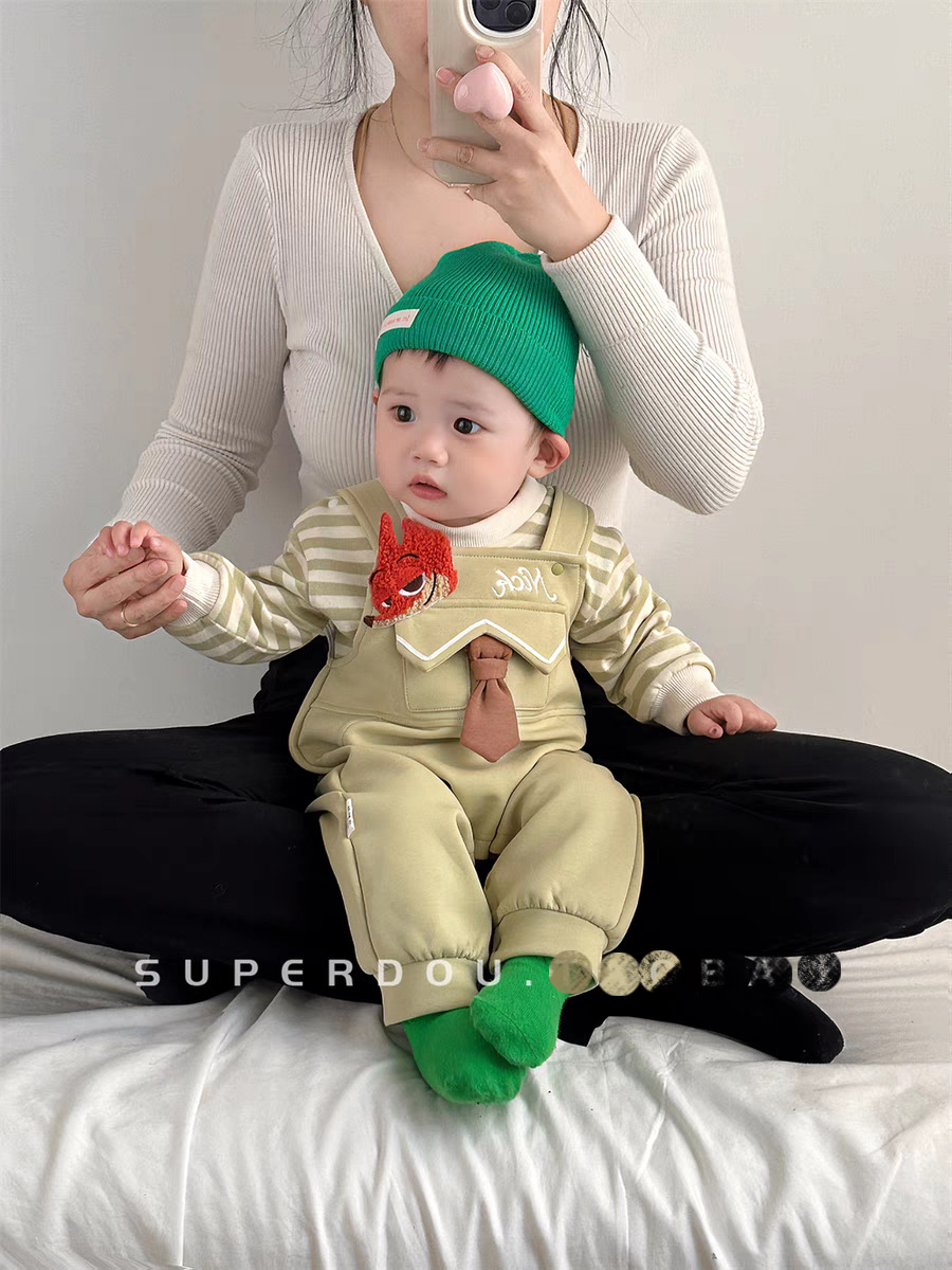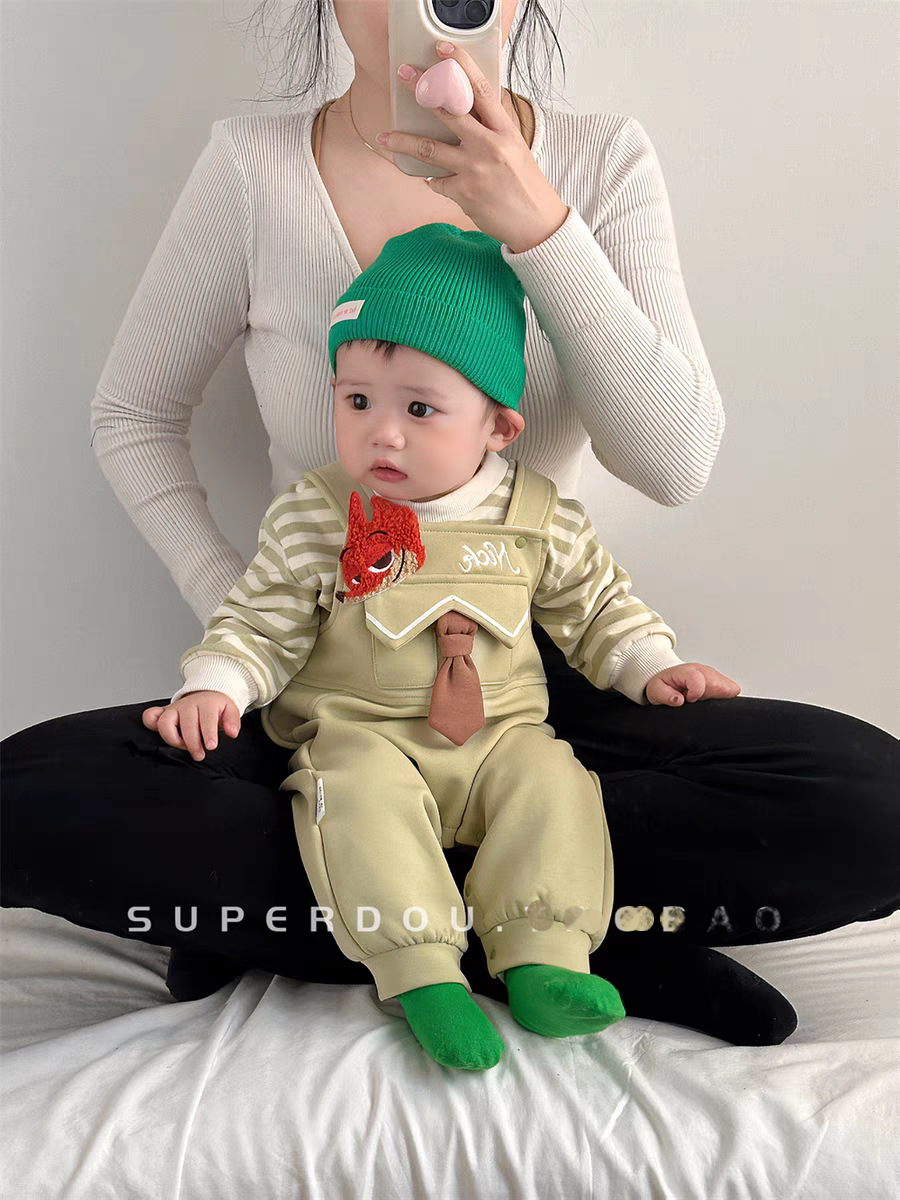 아기의 원바디 바지 봄과 가을 슈퍼 귀여운 만화 멜빵 한국식 올 매치 원바디 세트 봄 유행스토어 가기