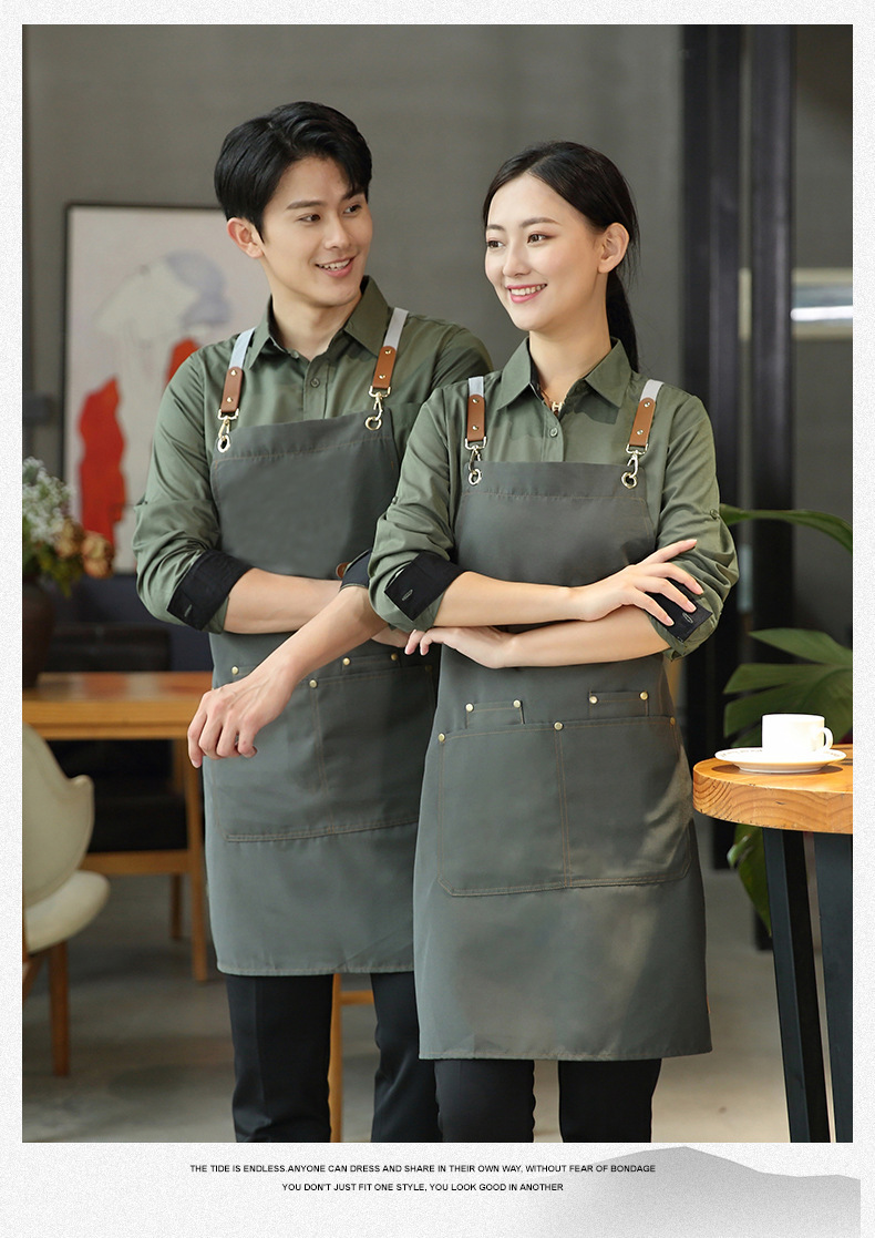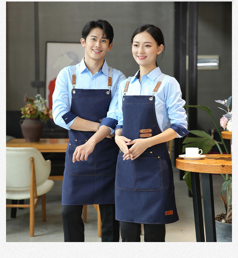 고급 앞치마 케이터링 특별 맞춤 로고 인쇄 레스토랑 호텔 우유 차 꽃집 슈퍼마켓 여성의 방수 작업복스토어 가기