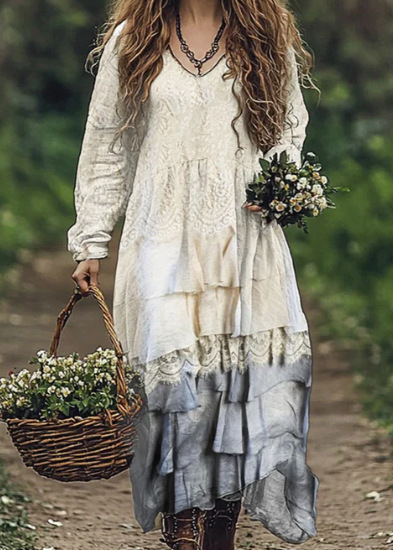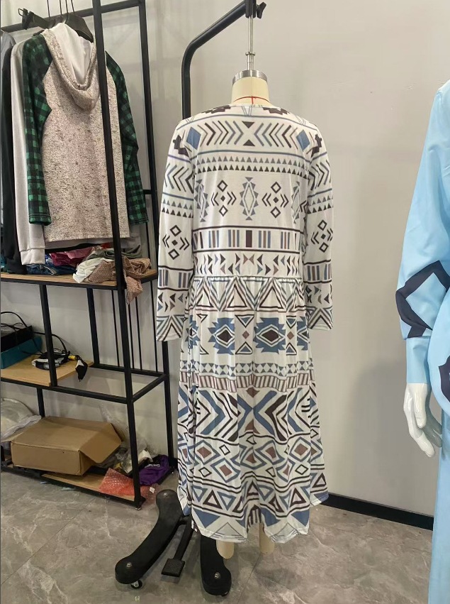 아마존 국경 2025 여름 새로운 유럽과 미국 여성의 느슨한 패션 V-목 인쇄 원피스