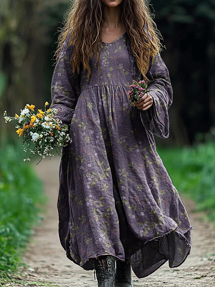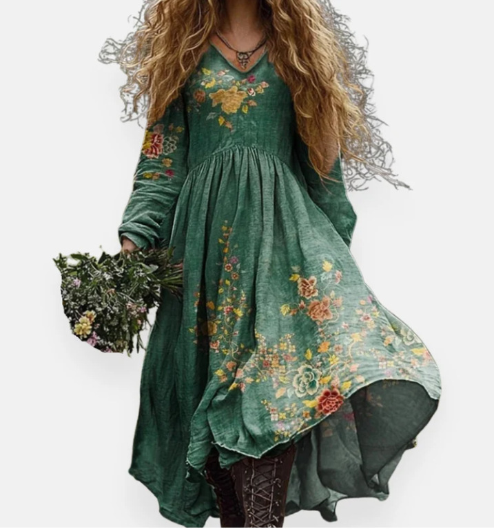아마존 국경 2025 여름 새로운 유럽과 미국 여성의 느슨한 패션 V-목 인쇄 원피스스토어 가기