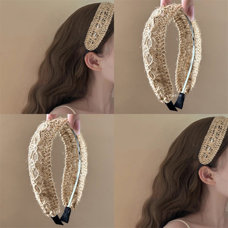 보헤미안 스타일 헤어 후프 해변 휴가 스트로우 와이드 브레드 헤드 밴드 우아한 액세서리 레트로 헤어 액세서리 목회 스타일 헤드웨어