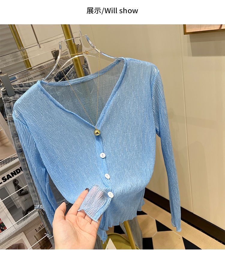 선스크린 코트 V-Neck 최고 여성 여름 얇은 목도리 아이스 실크 카디건 긴 소매 화이트 외부 짧은 에어컨 셔츠스토어 가기