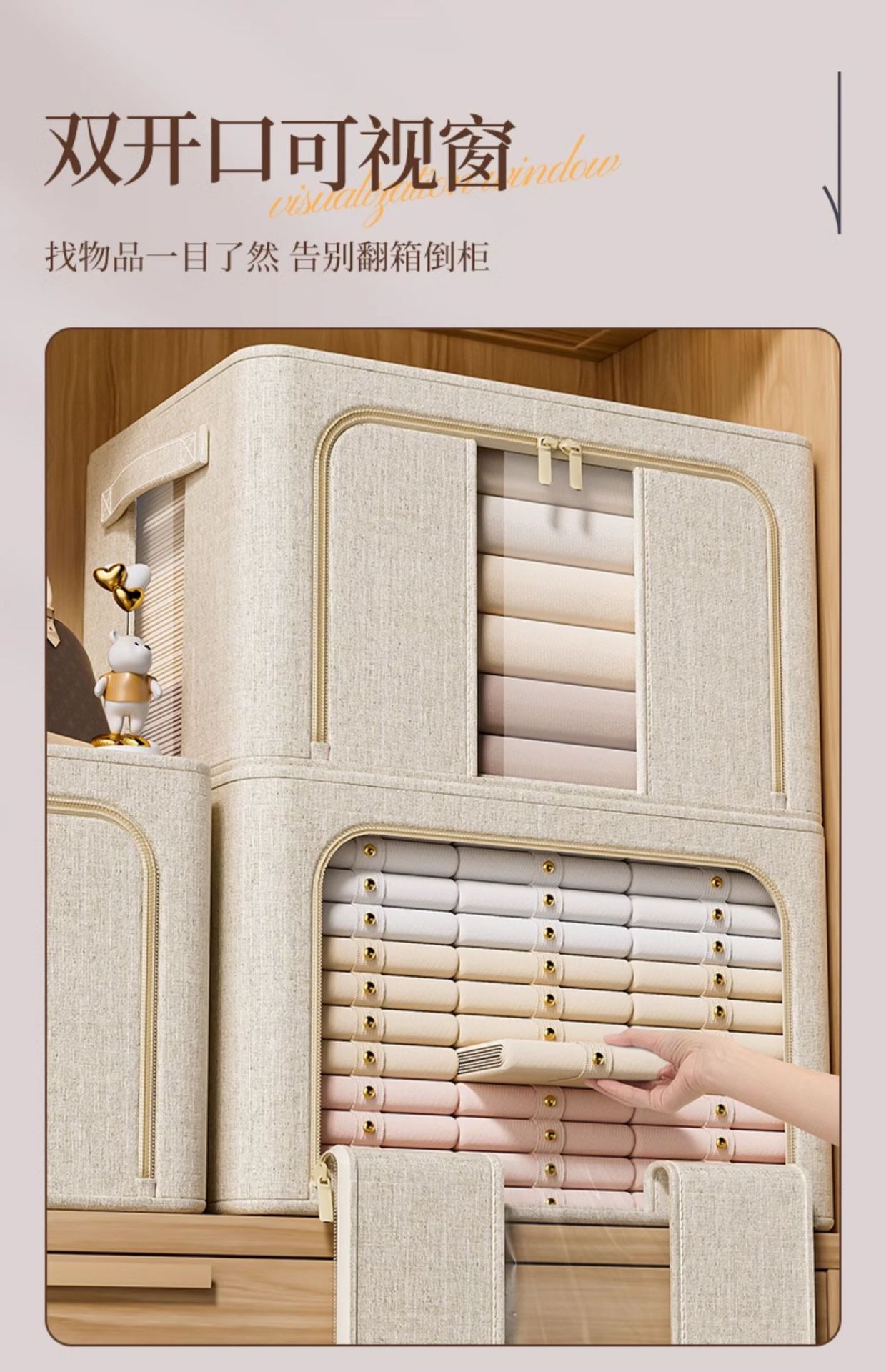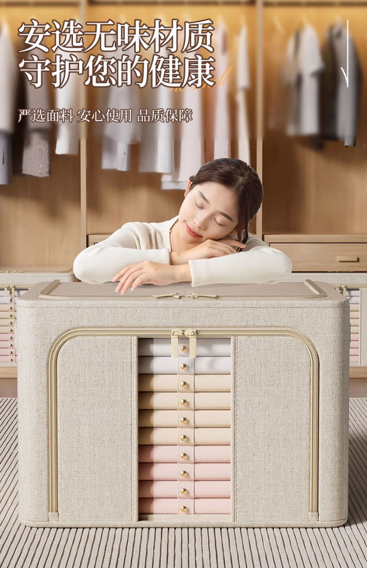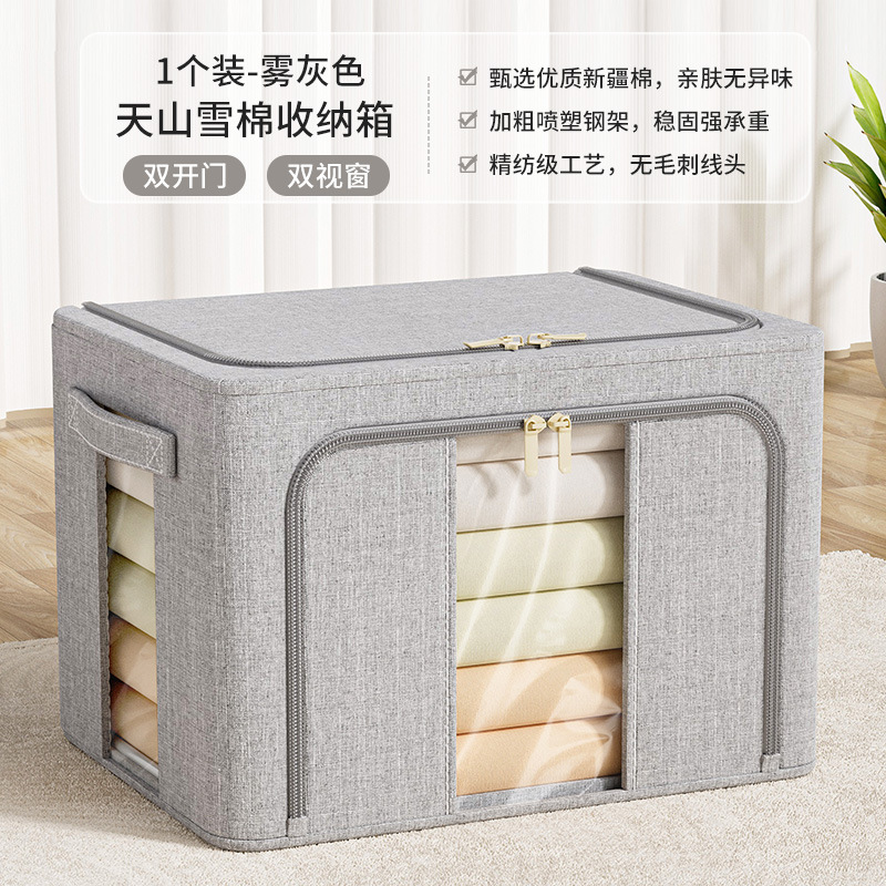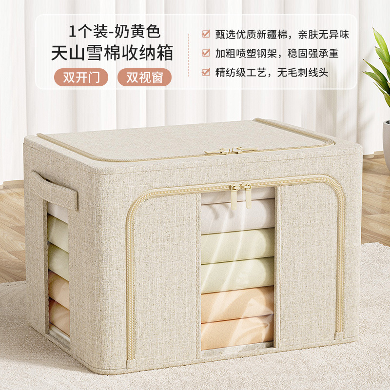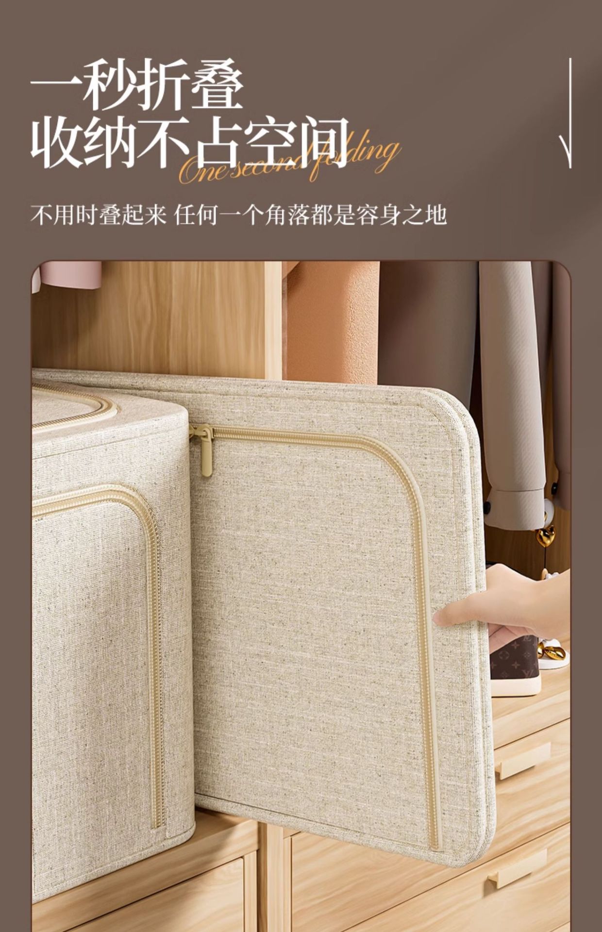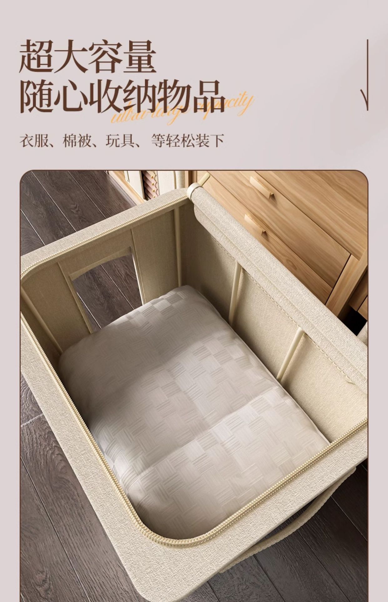 새해 Tianshan 면화 및 린넨 의류 보관 상자 가정용 옷장 마무리 직물 접이식 보관 바구니 기숙사스토어 가기