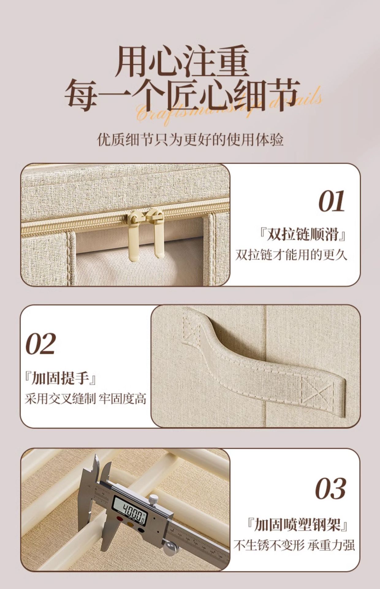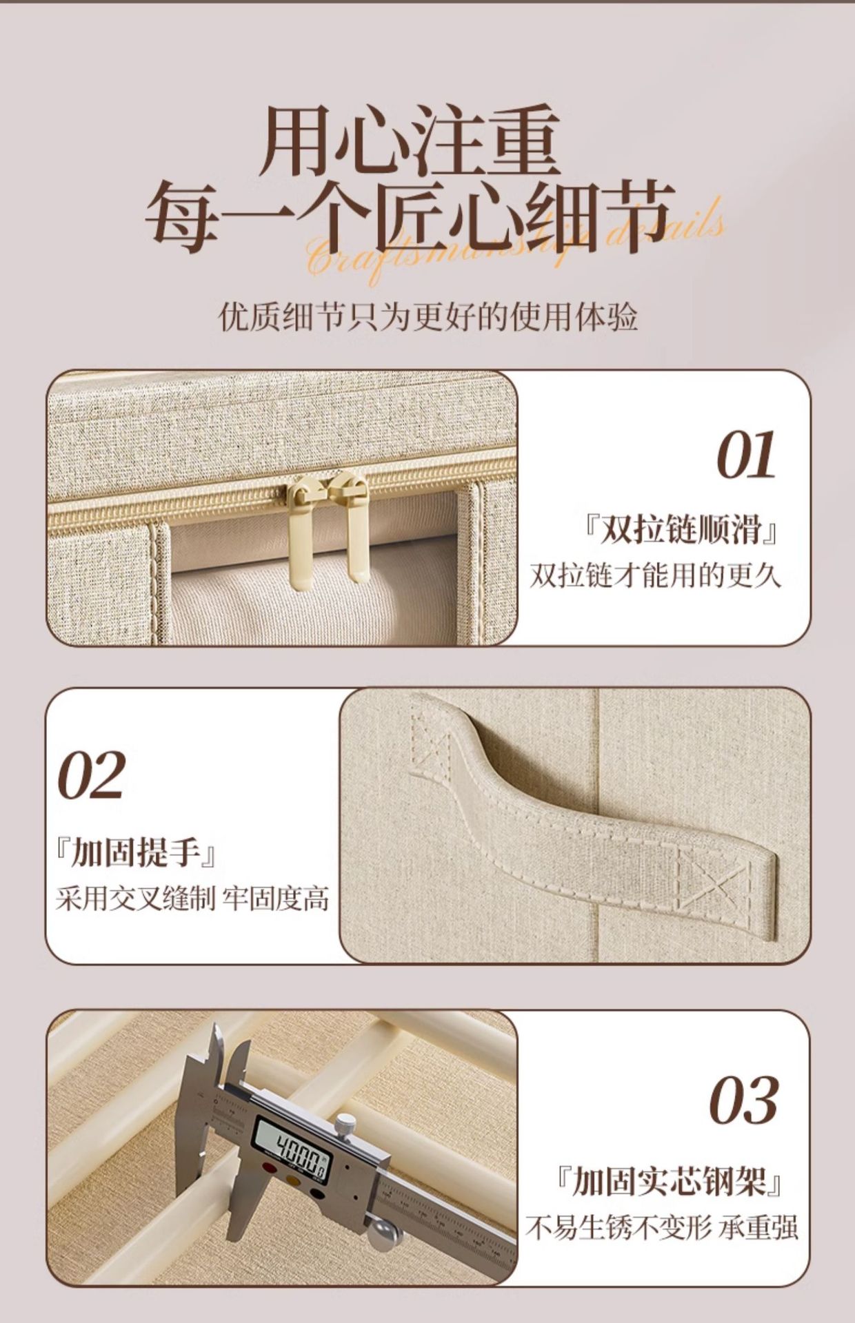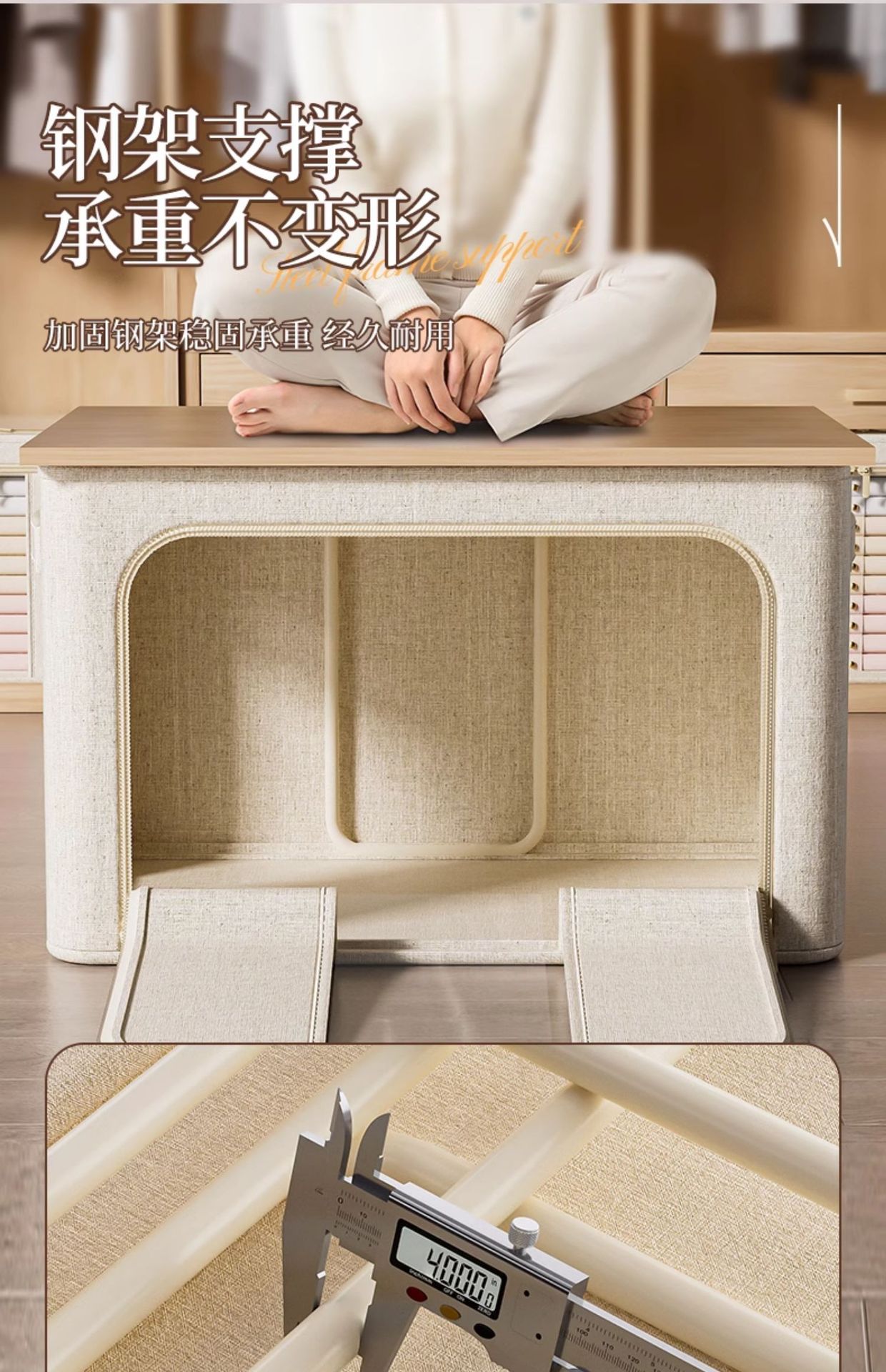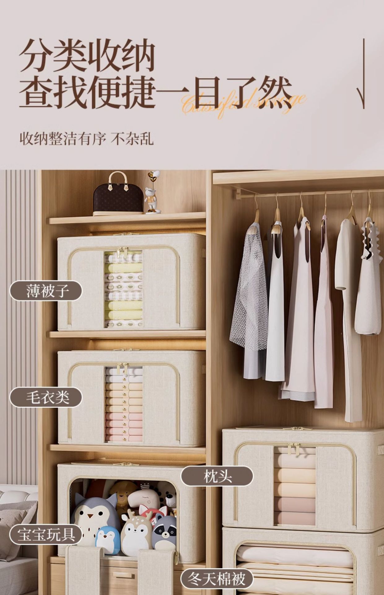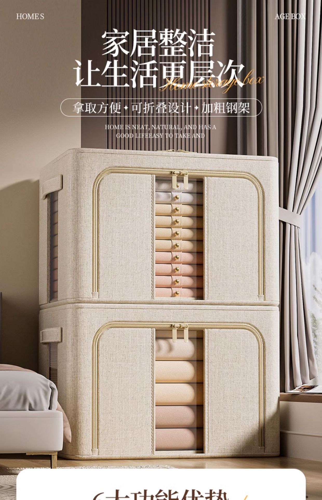 새해 Tianshan 면화 및 린넨 의류 보관 상자 가정용 옷장 마무리 직물 접이식 보관 바구니 기숙사스토어 가기