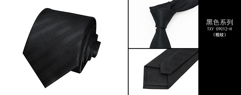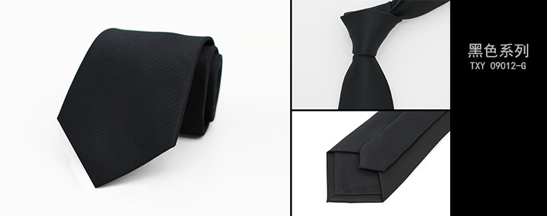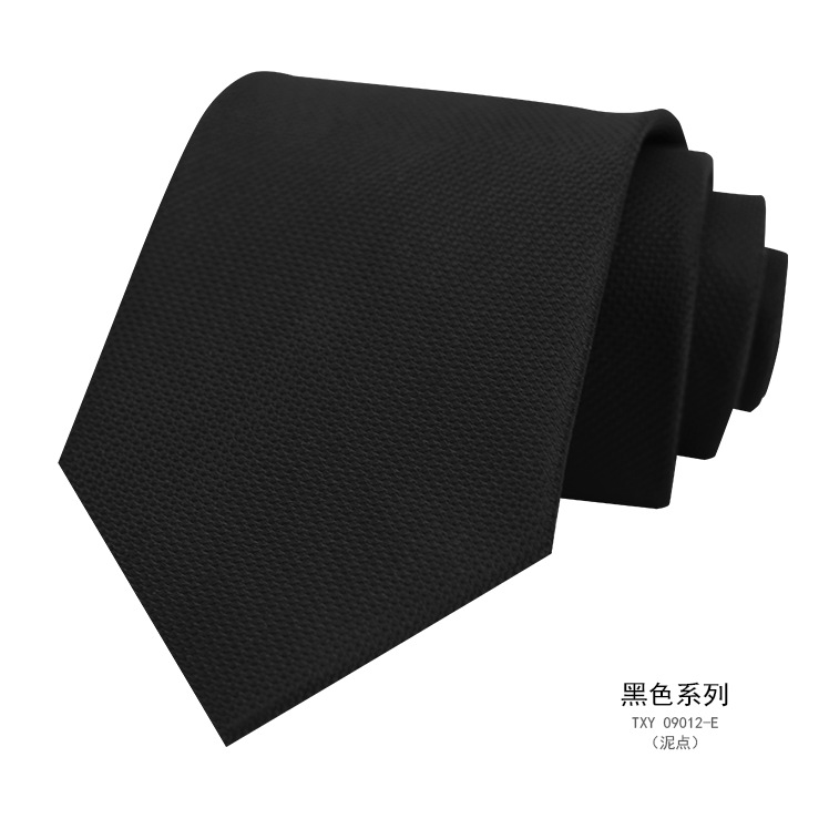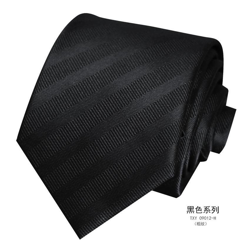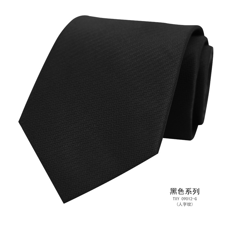 즉시 출고 가능한 정장용 검정 넥타이, 한국 스타일 8cm, 직장인 비즈니스용, 올블랙 무지, 손으로 짠 암색 무늬, 비즈니스 스타일