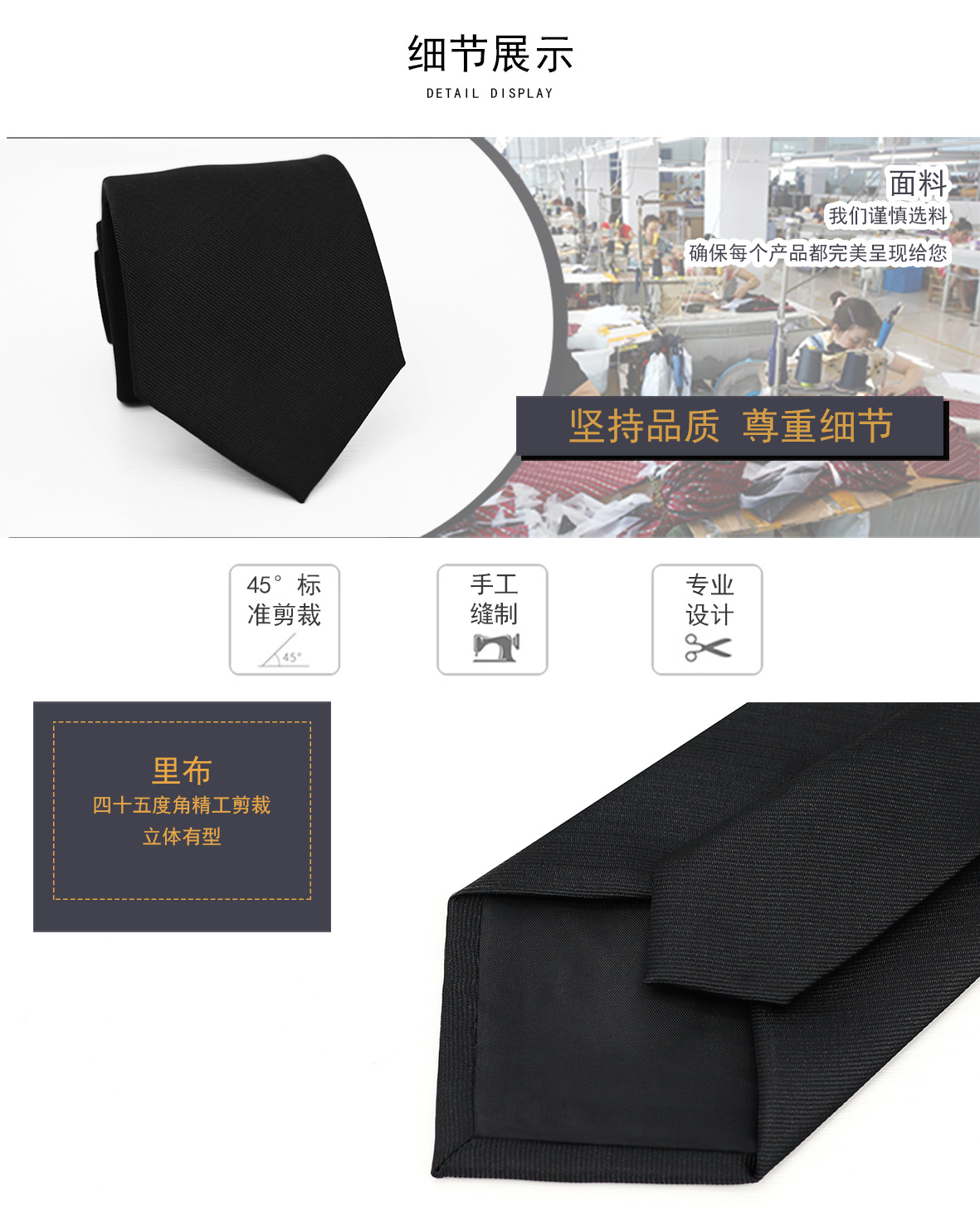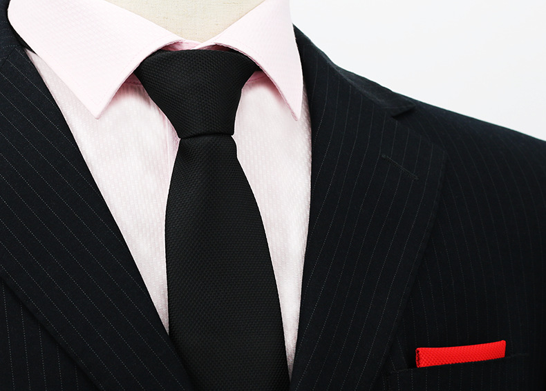 즉시 출고 가능한 정장용 검정 넥타이, 한국 스타일 8cm, 직장인 비즈니스용, 올블랙 무지, 손으로 짠 암색 무늬, 비즈니스 스타일스토어 가기