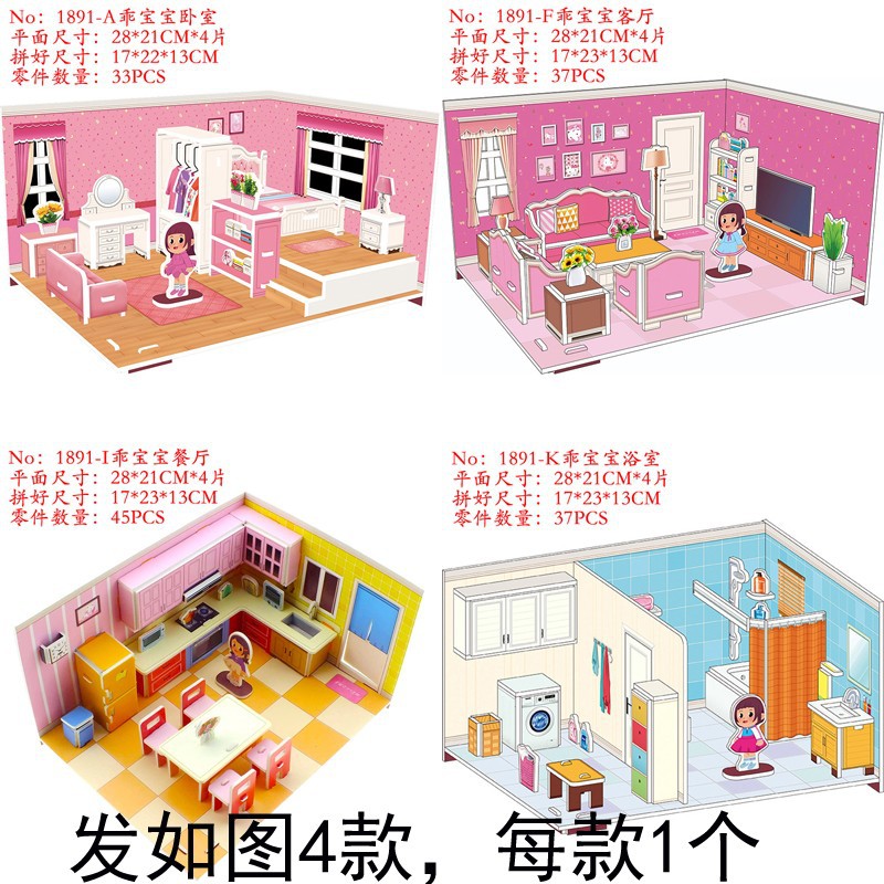 어린이 3d 입체 퍼즐 DIY 오두막 집 모델 소녀 방 종이 5 세 조립 교육 장난감 건물