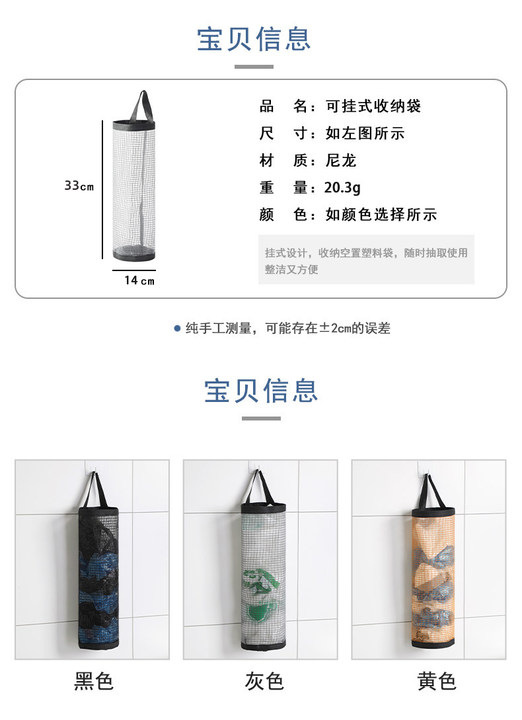 도어 스토리지 교수형 가방 주방 쓰레기 봉투 보관 가방 벽에 장착 인출 가능한 보관 가방 편리한 라운드 구성 가방스토어 가기