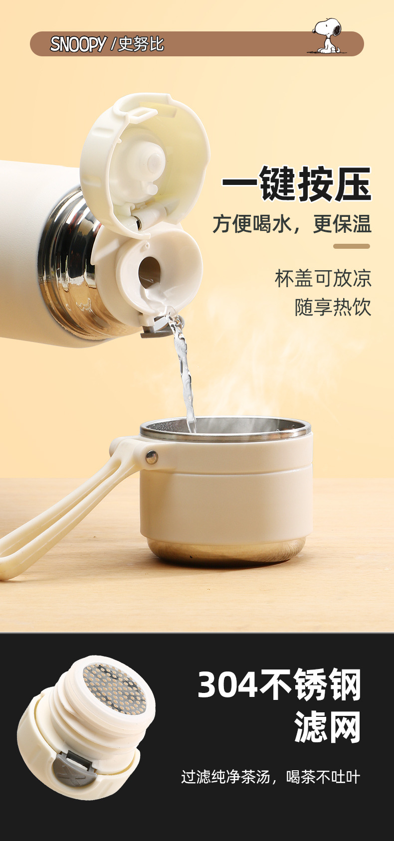 초등학생을위한 높은 색상 값을 가진 소녀를위한 스누피 머그, 학교를위한 차를 만들기위한 특별한 컵, 소년을위한 휴대용 병