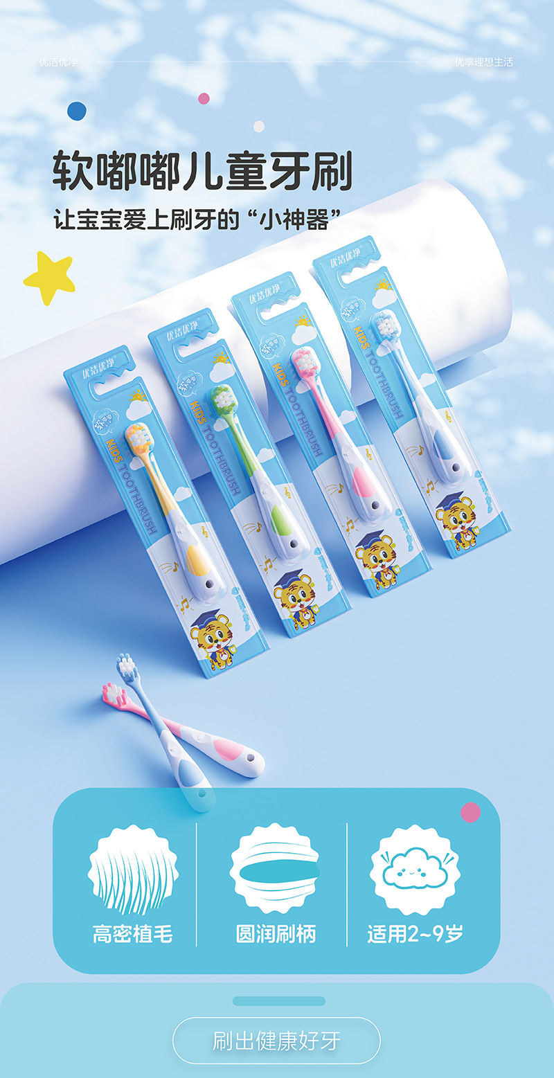 Youjie Youjing 어린이 부드러운 헤어 칫솔 싱글 카드 멀티 컬러 폭발 아기 어린이 칫솔 공장 도매스토어 가기