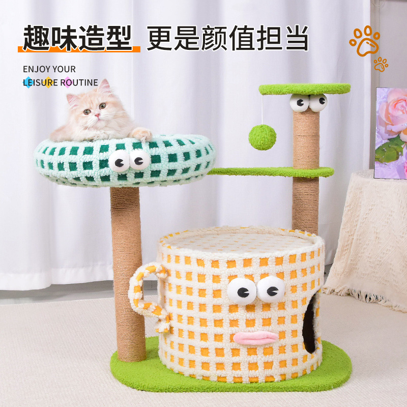 새로운 작은 괴물 고양이 등반 프레임 고양이 스크래치 칼럼 사이 살 고양이 스크래치 보드 고양이 둥지 통합 자기 안녕 더미 고양이 장난감 없음