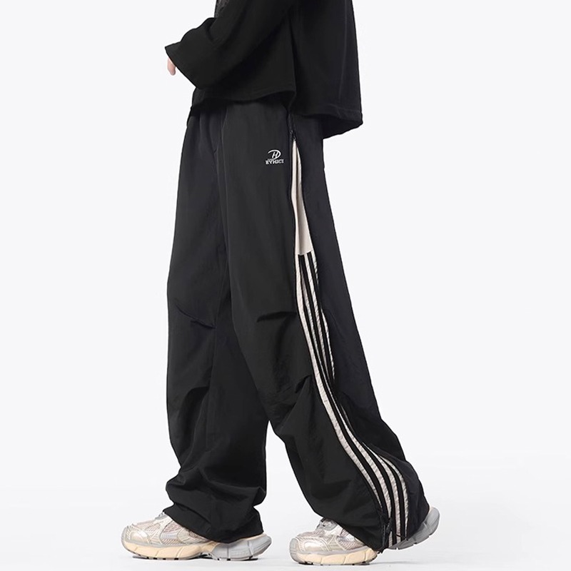 아메리칸 스타일 낙하산 바지 남성 여름 새로운 유행 하이 스트리트 스트라이프 스트레이트 다리 바지 유행 브랜드 빠른 건조 와이드 레그 캐주얼 바지