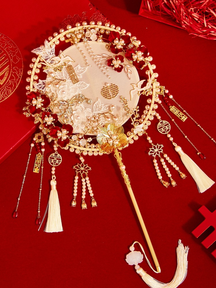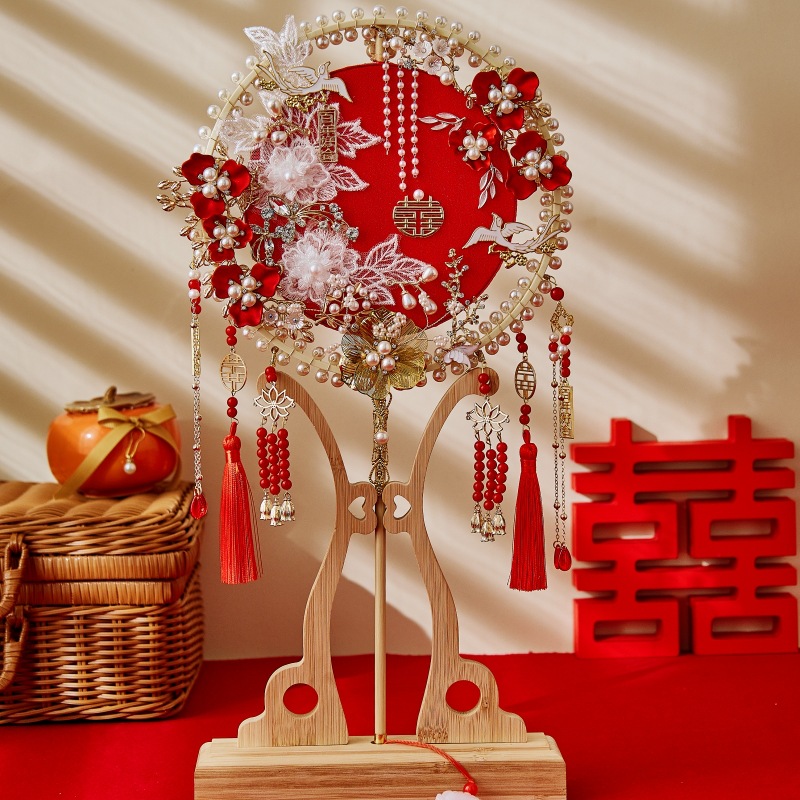 Xiuhe 라운드 팬 신부 웨딩 팬 diy 소재 가방 자수 골동품 웨딩 팬 중국 웨딩 팬 꽃을 들고스토어 가기