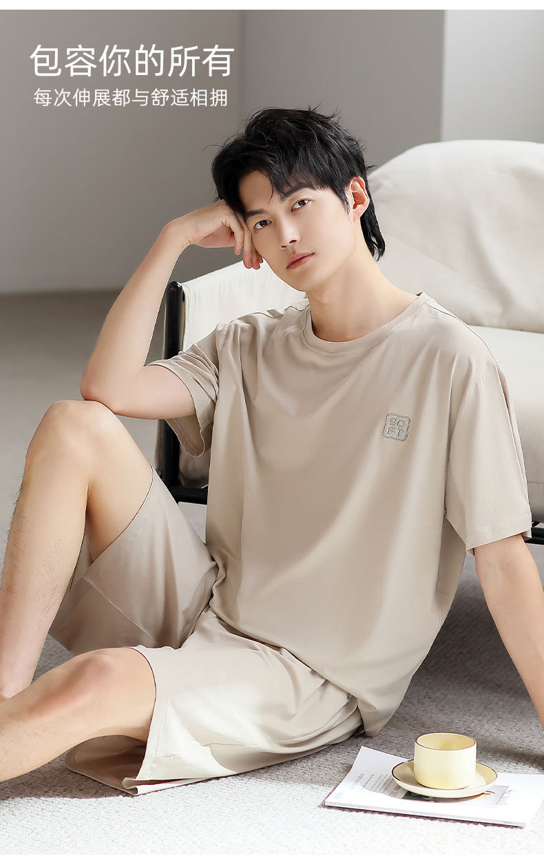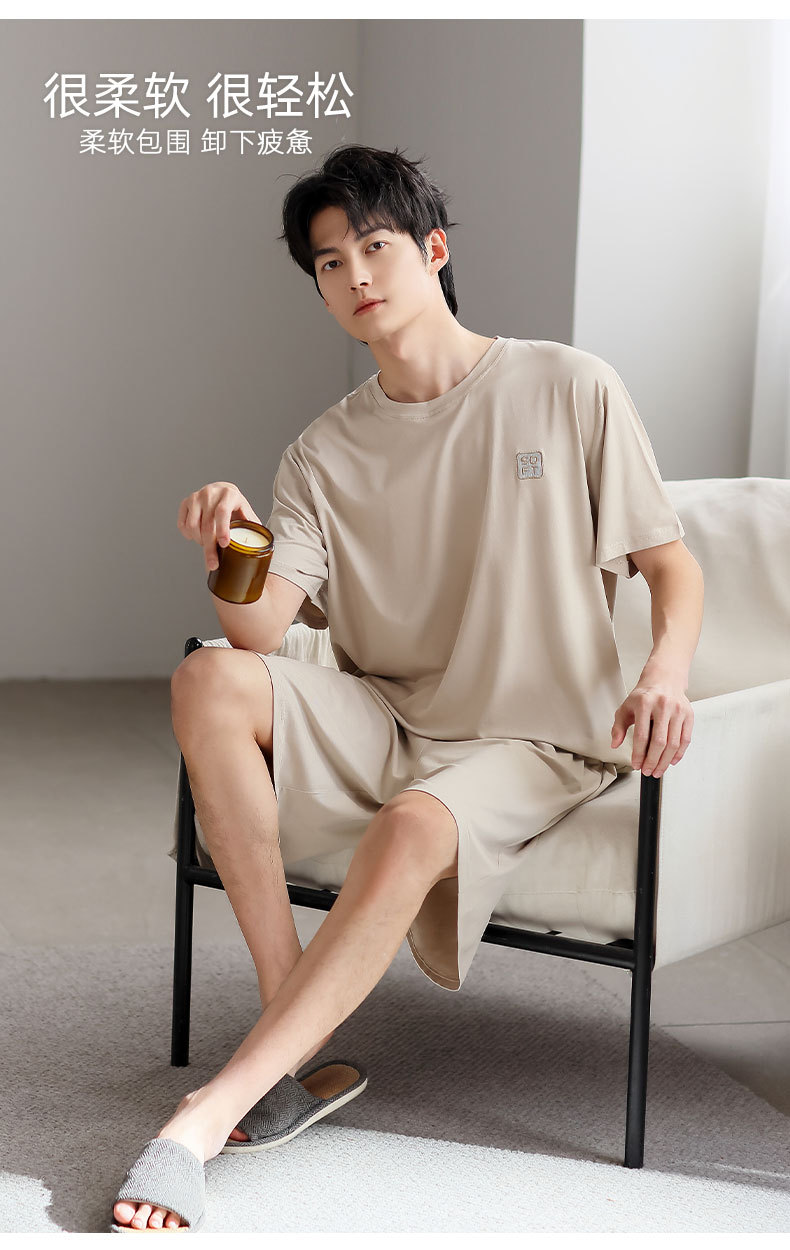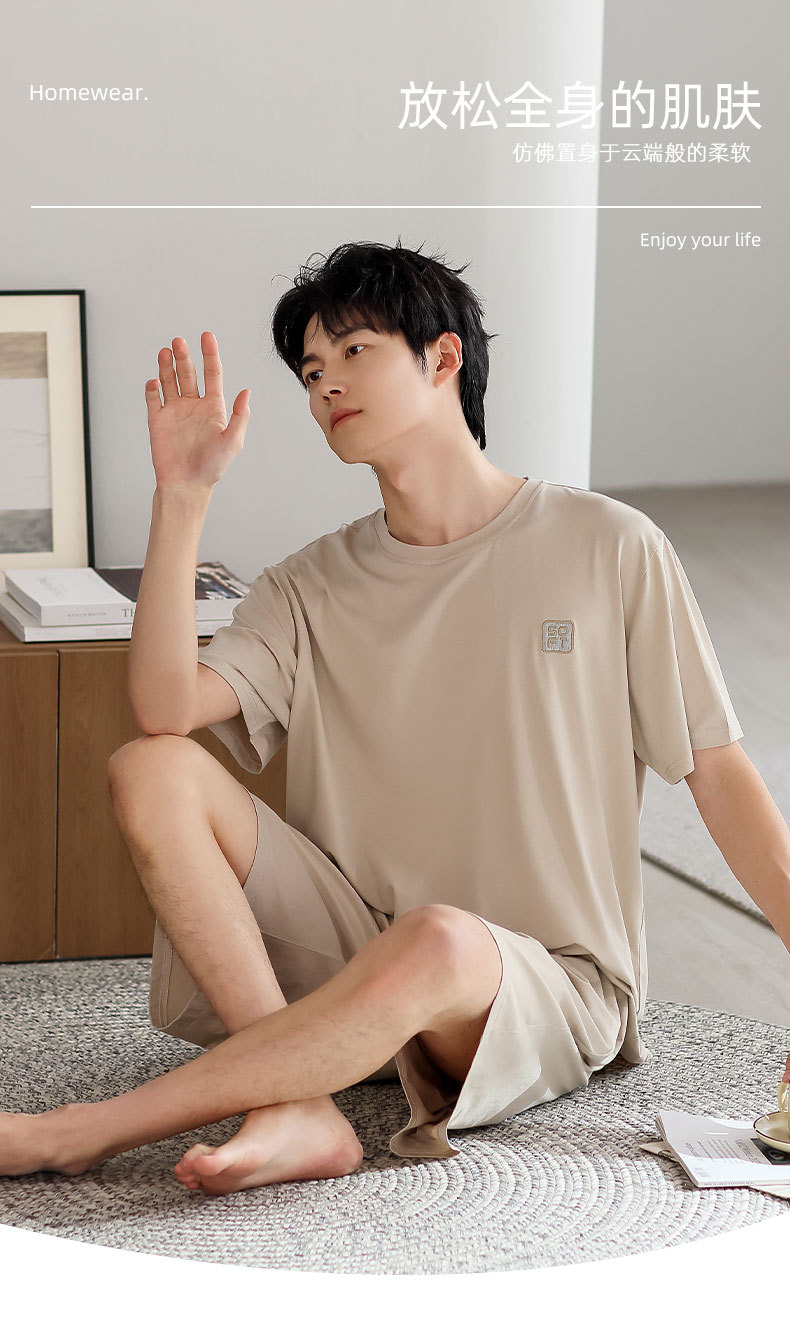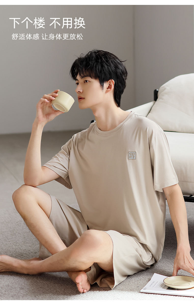 여름 남자 모달 잠옷 얇은 쿨 반팔 플러스 사이즈 홈 캐주얼 간단한 느슨한 홈 의류 세트스토어 가기