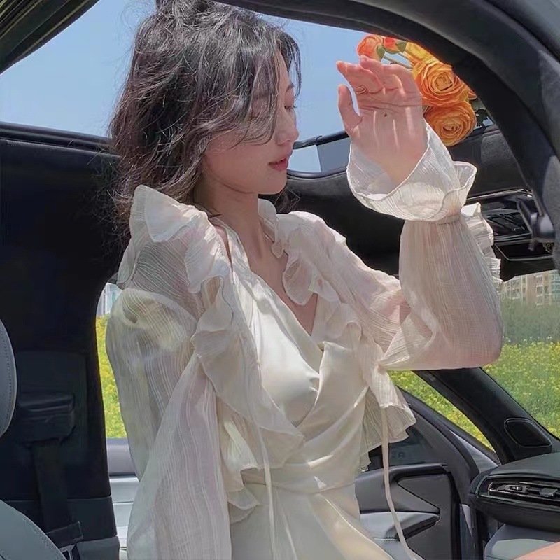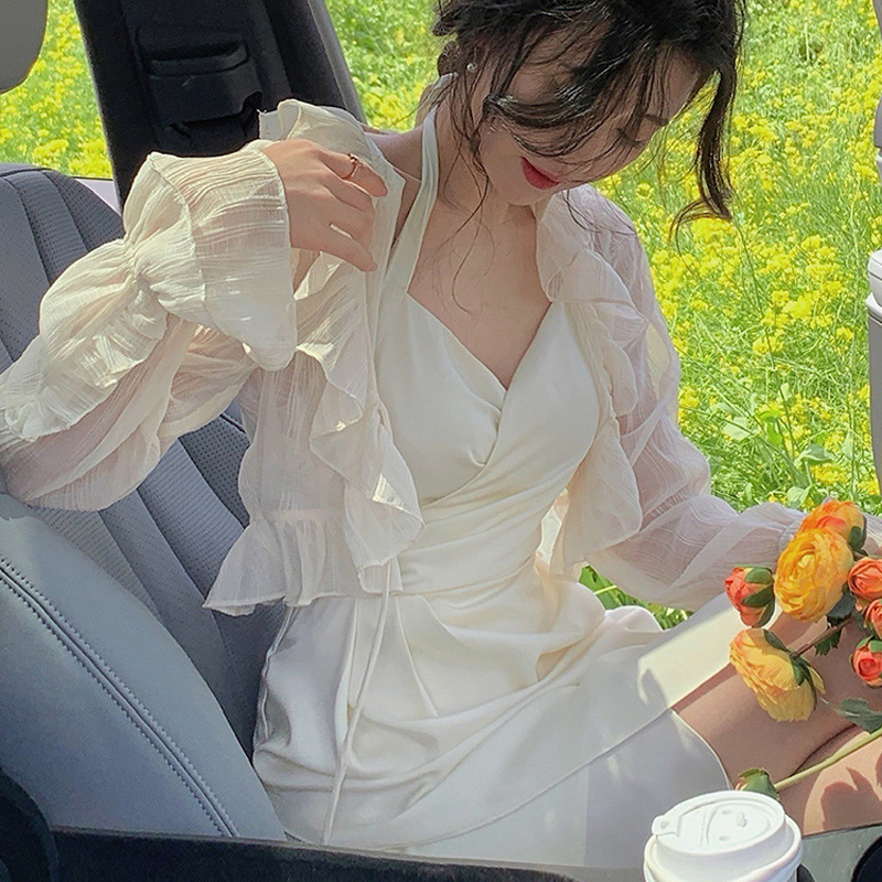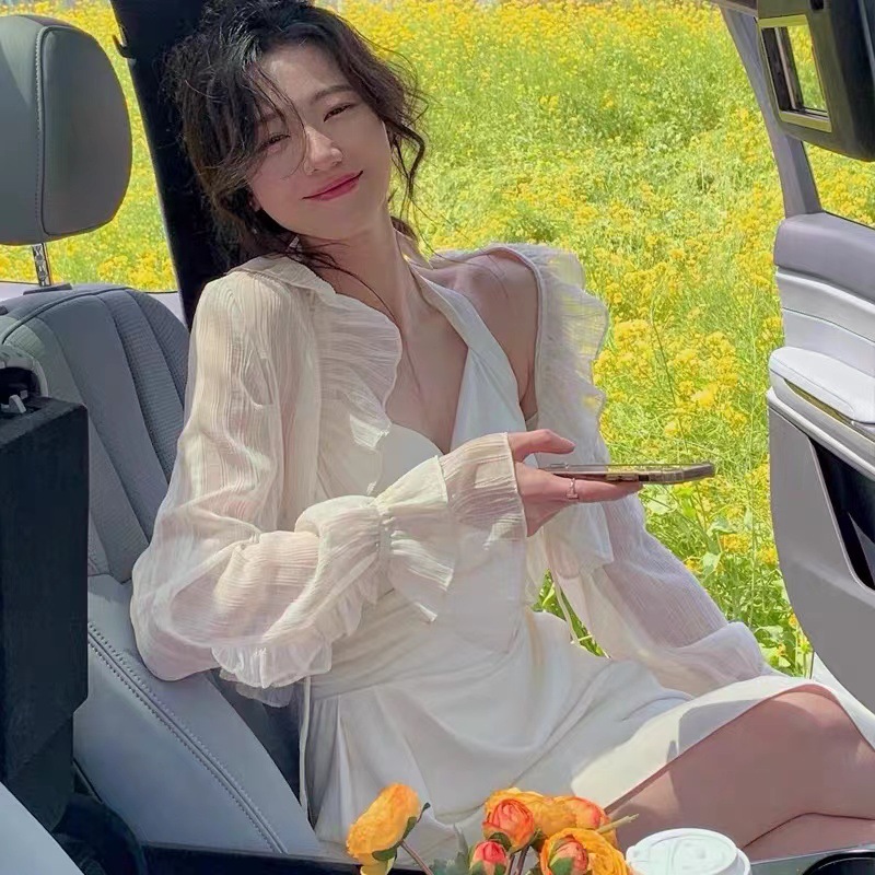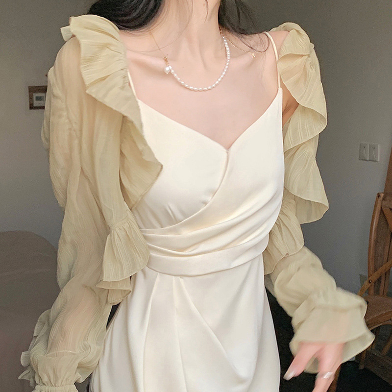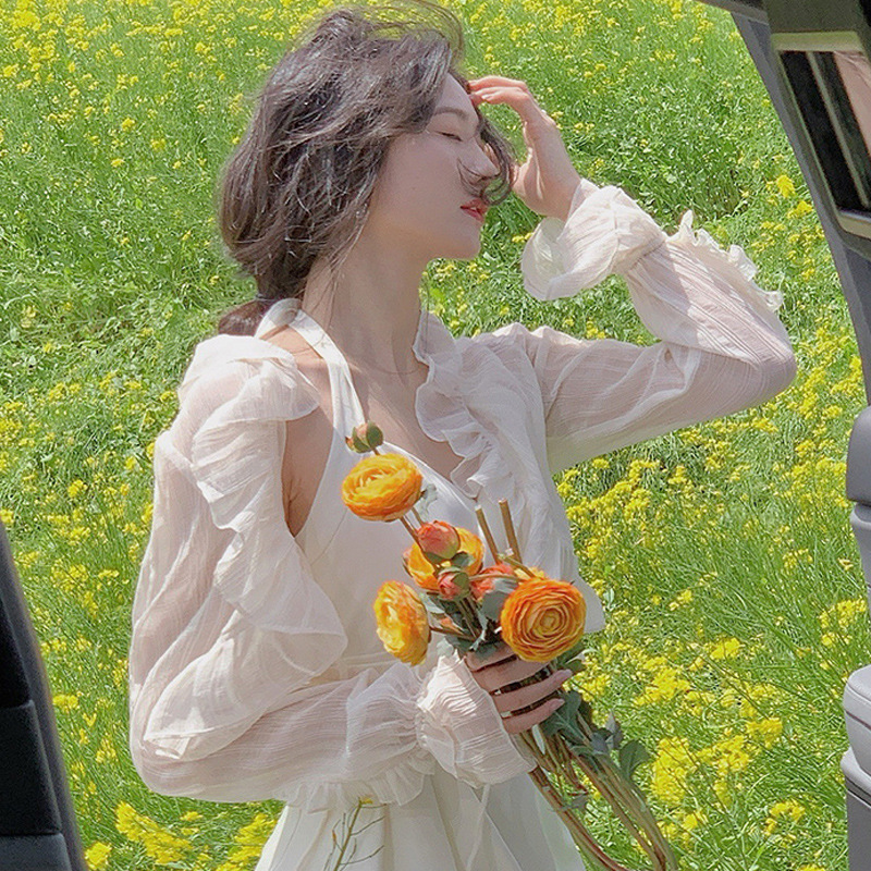 시폰 요정 공기 선스크린 카디건 얇은 여성용 슬립 스커트 오버 셔츠 여름 프랑스 숄 아이스 실크 작은 닦음