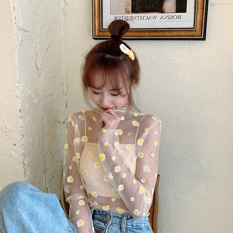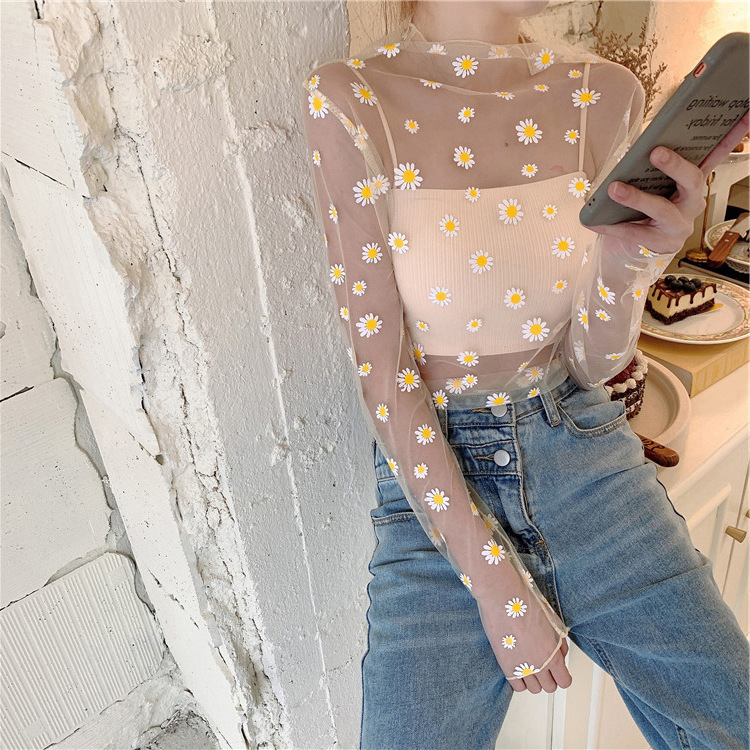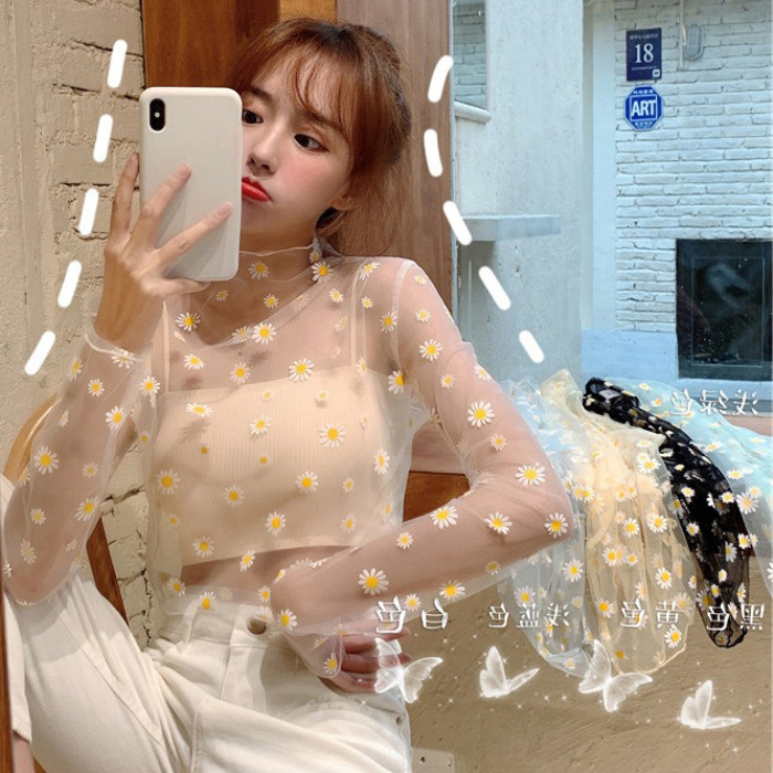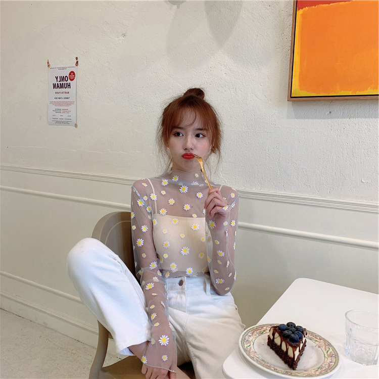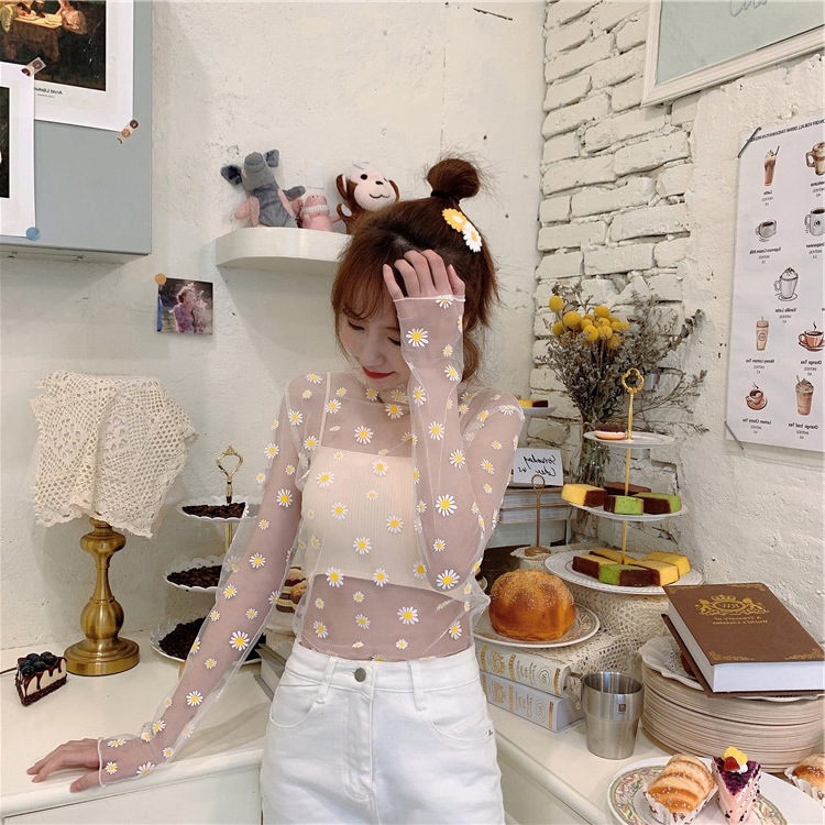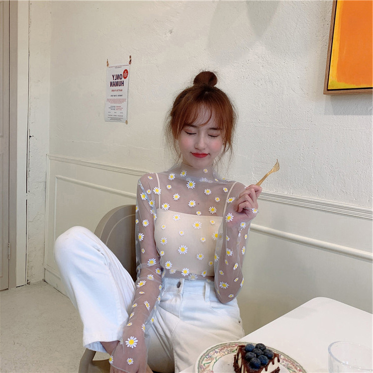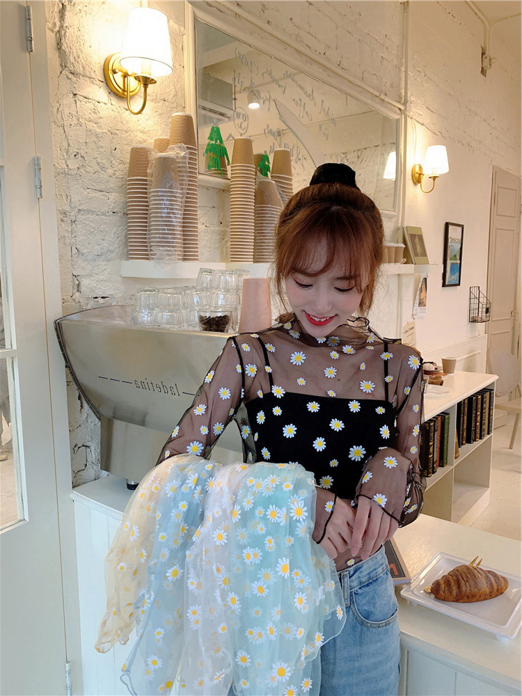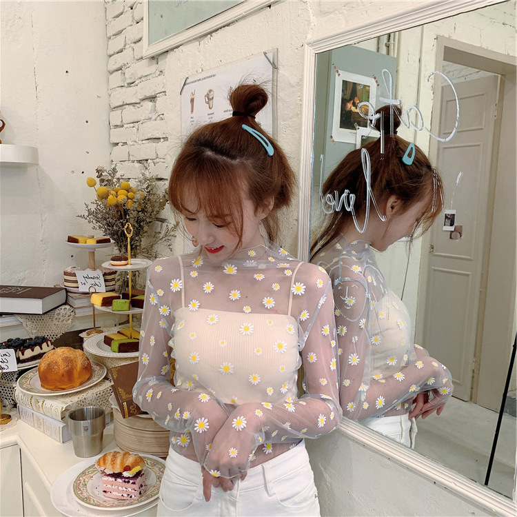 여름 한국식 2025 새 요정 반 높이 칼라 데이지 투피스 선스크린 여성용 긴팔 레이스 셔츠스토어 가기