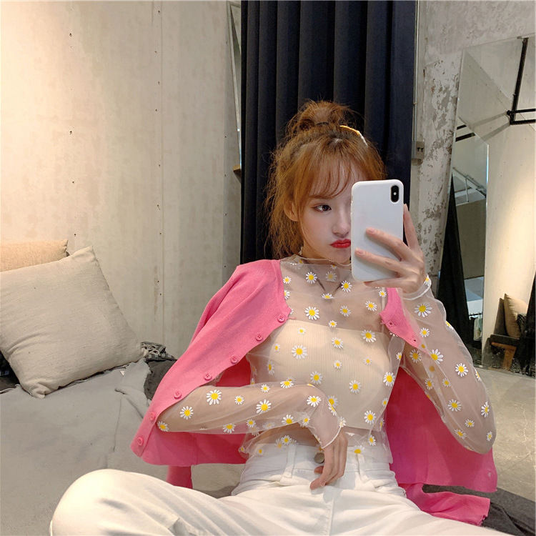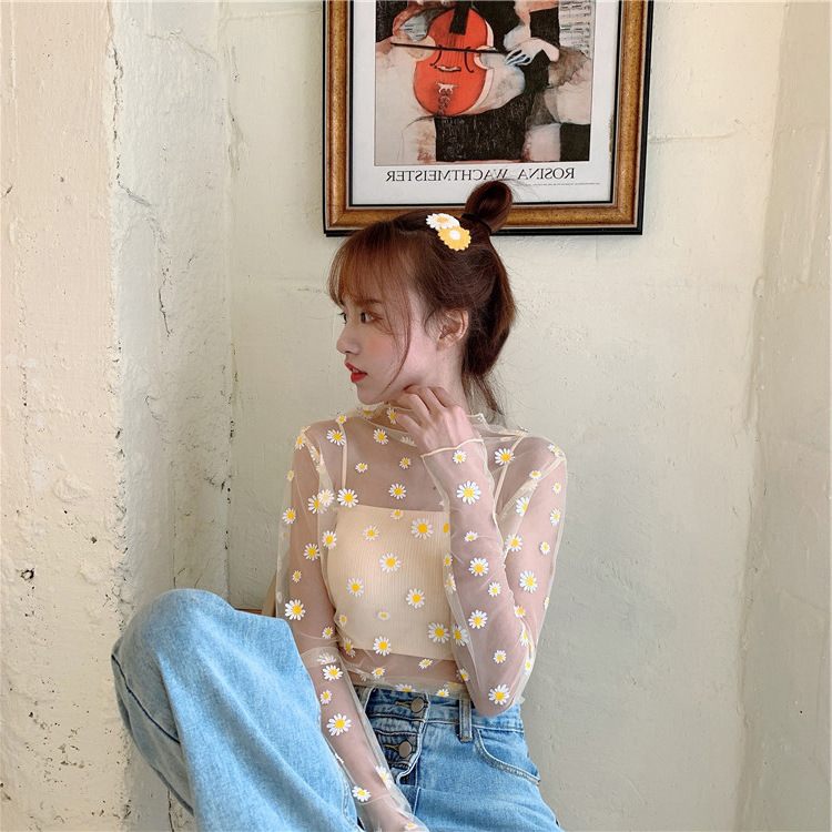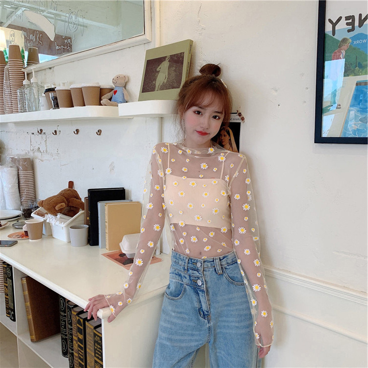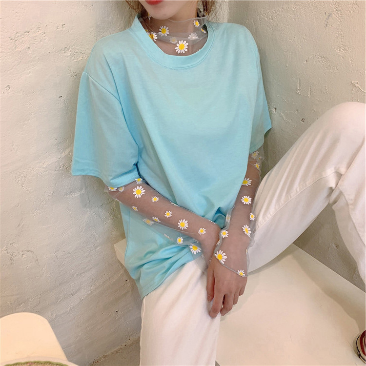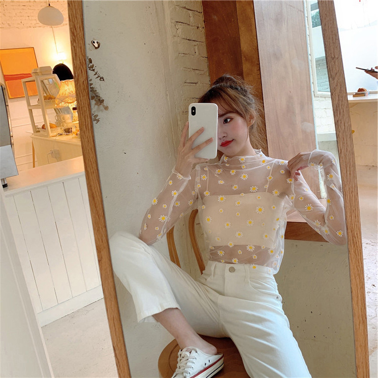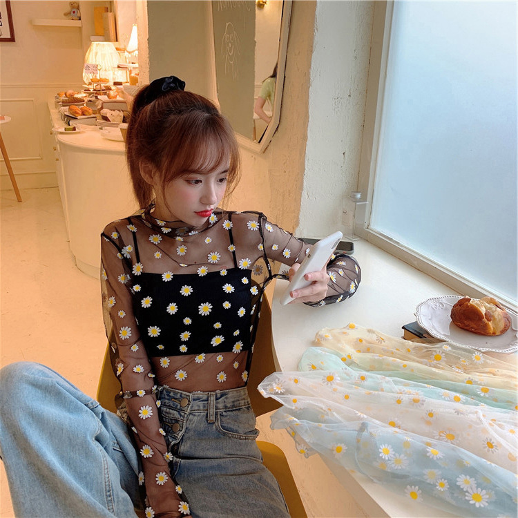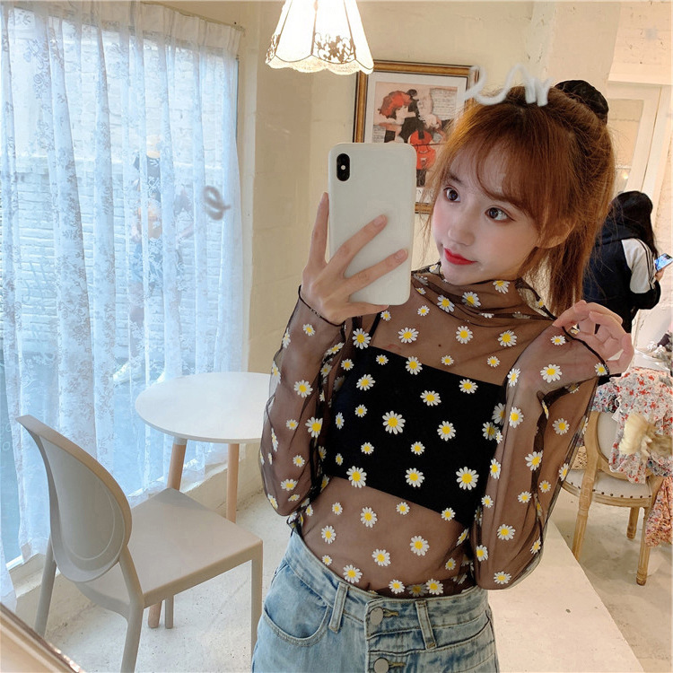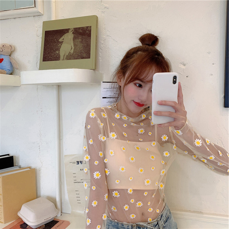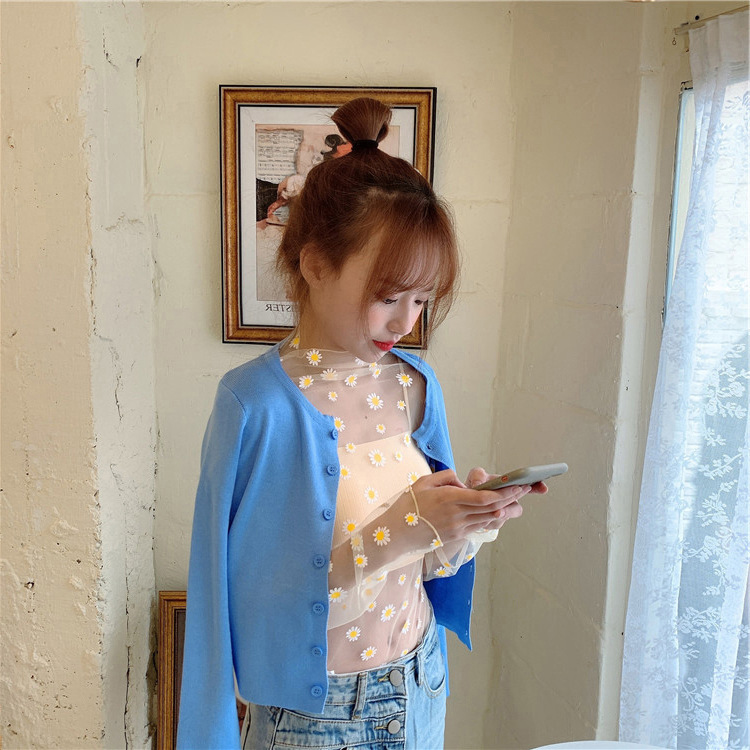 여름 한국식 2025 새 요정 반 높이 칼라 데이지 투피스 선스크린 여성용 긴팔 레이스 셔츠스토어 가기