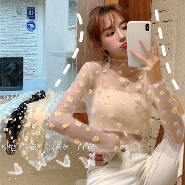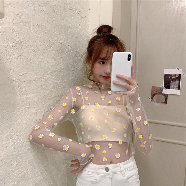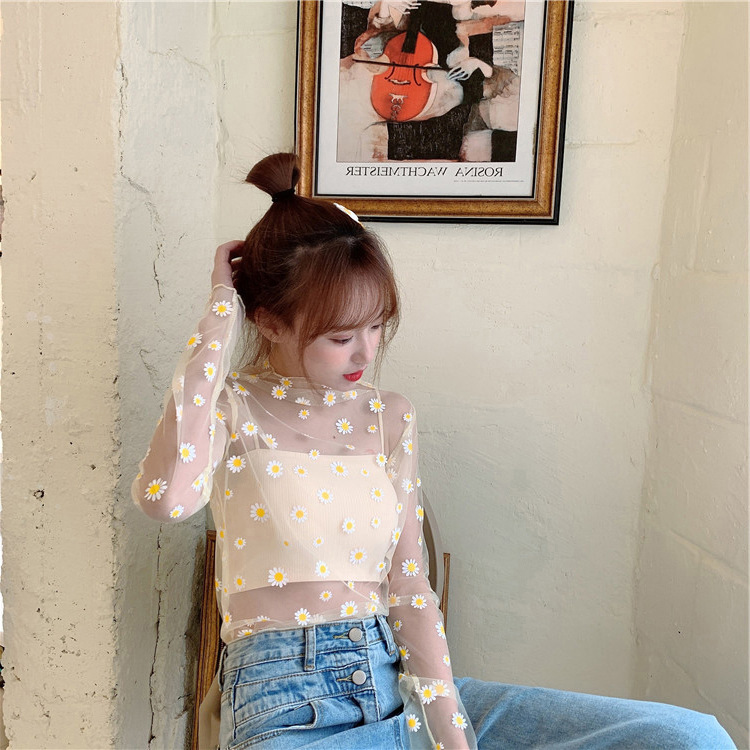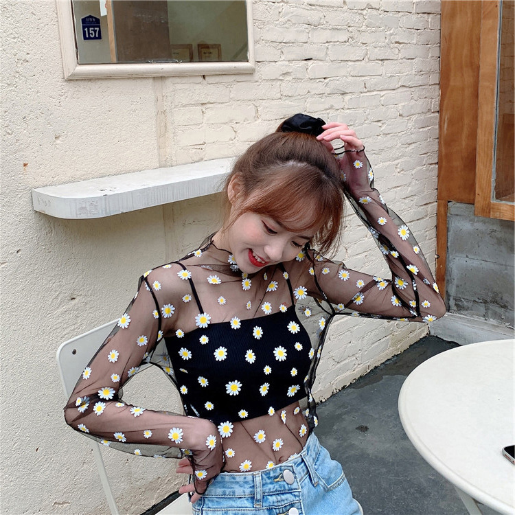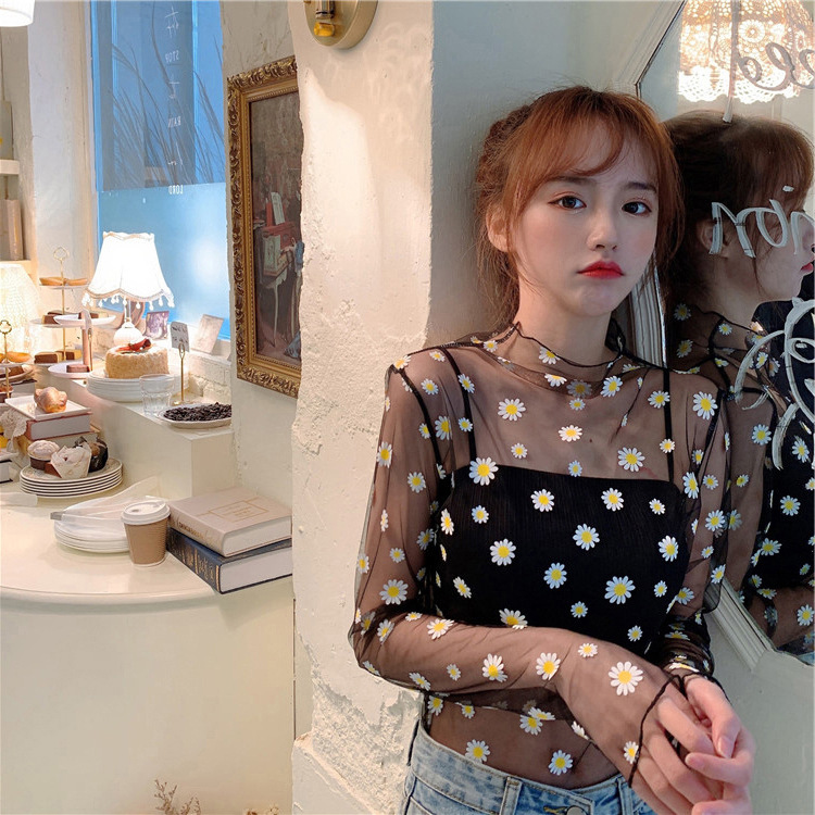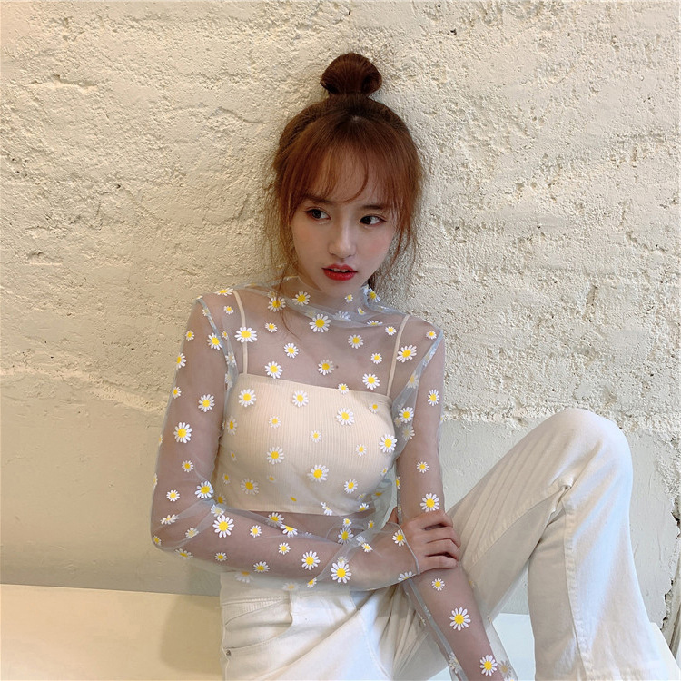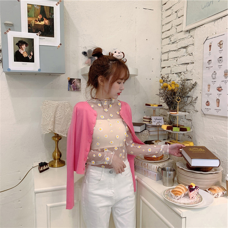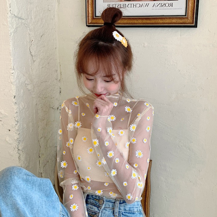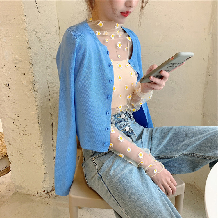 여름 한국식 2025 새 요정 반 높이 칼라 데이지 투피스 선스크린 여성용 긴팔 레이스 셔츠스토어 가기