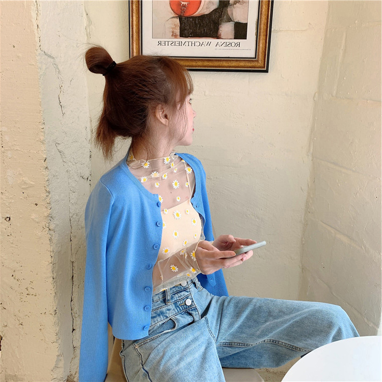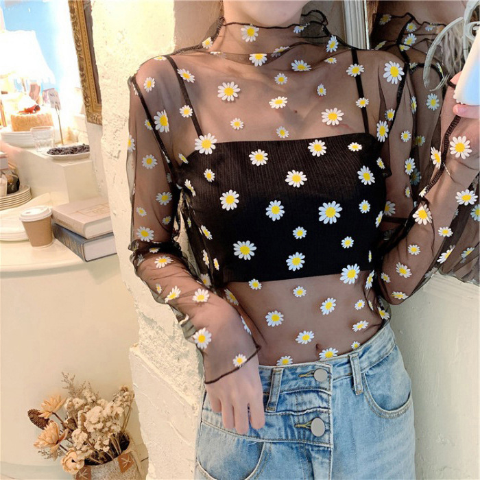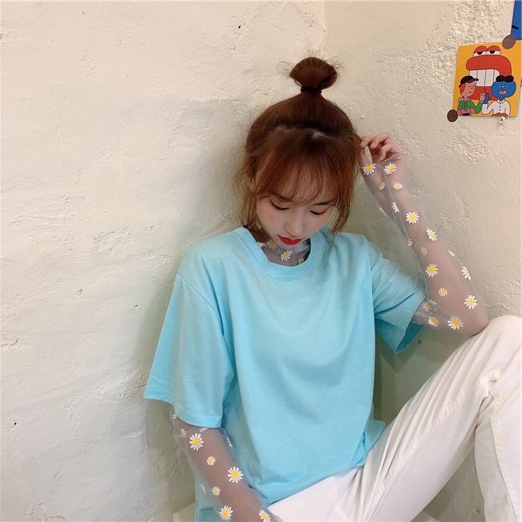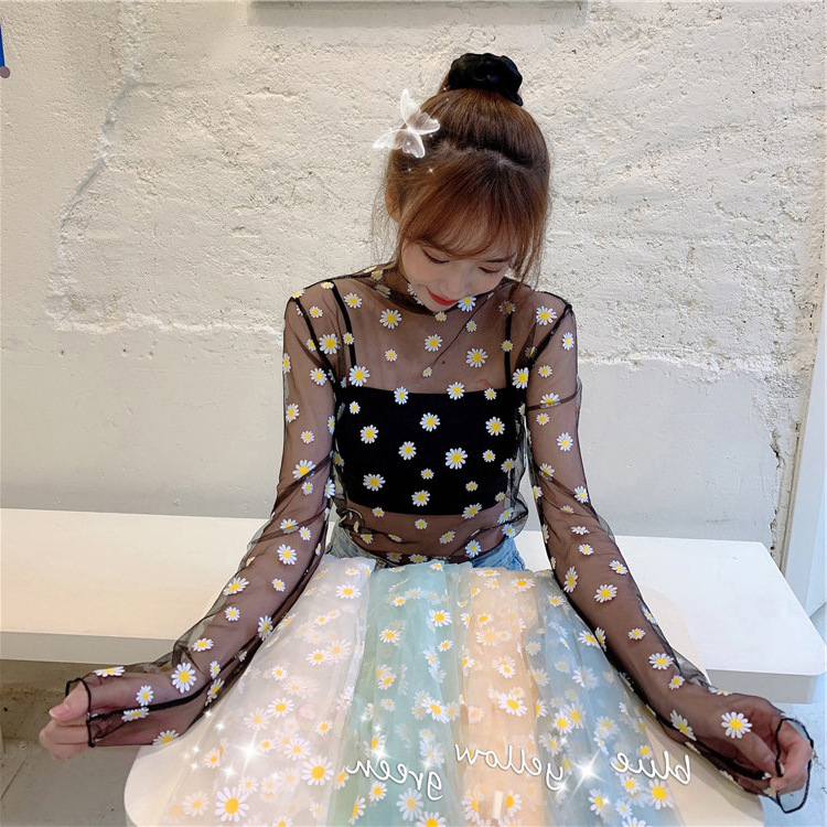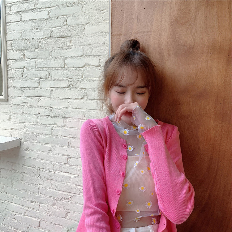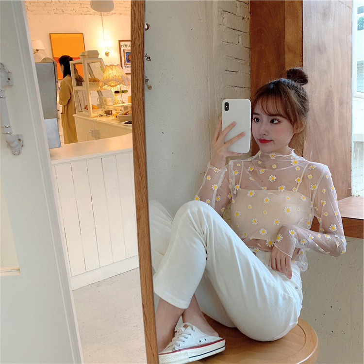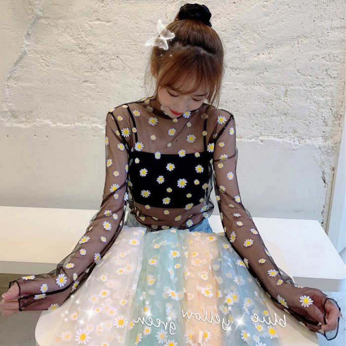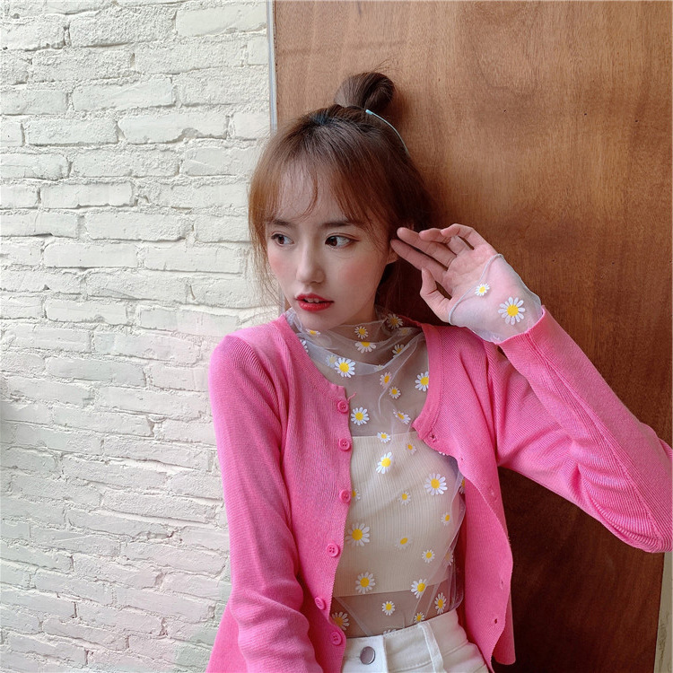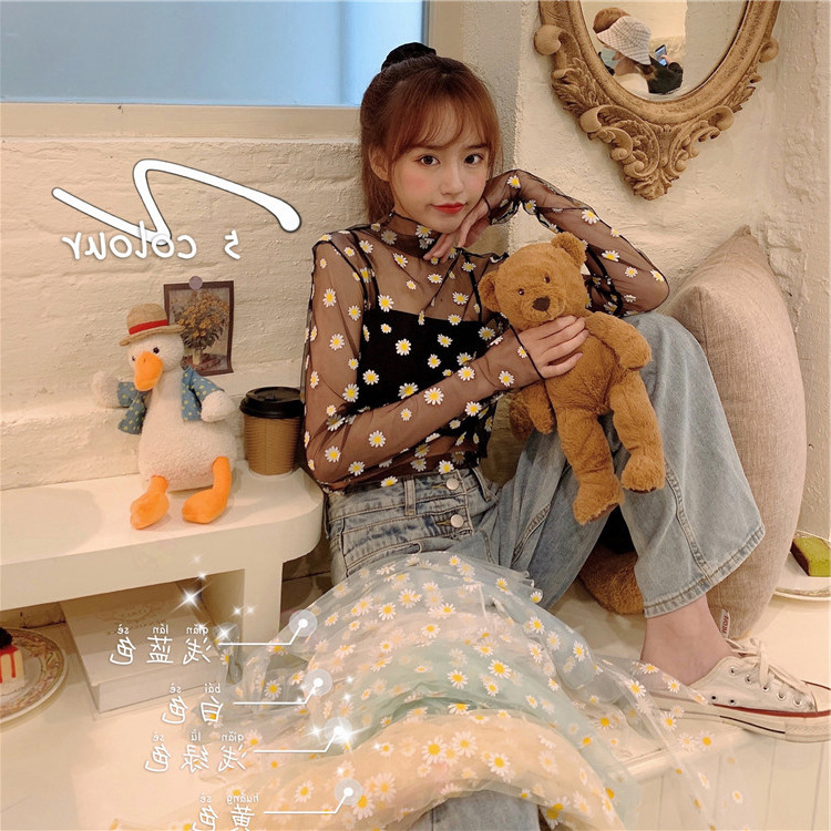 여름 한국식 2025 새 요정 반 높이 칼라 데이지 투피스 선스크린 여성용 긴팔 레이스 셔츠스토어 가기
