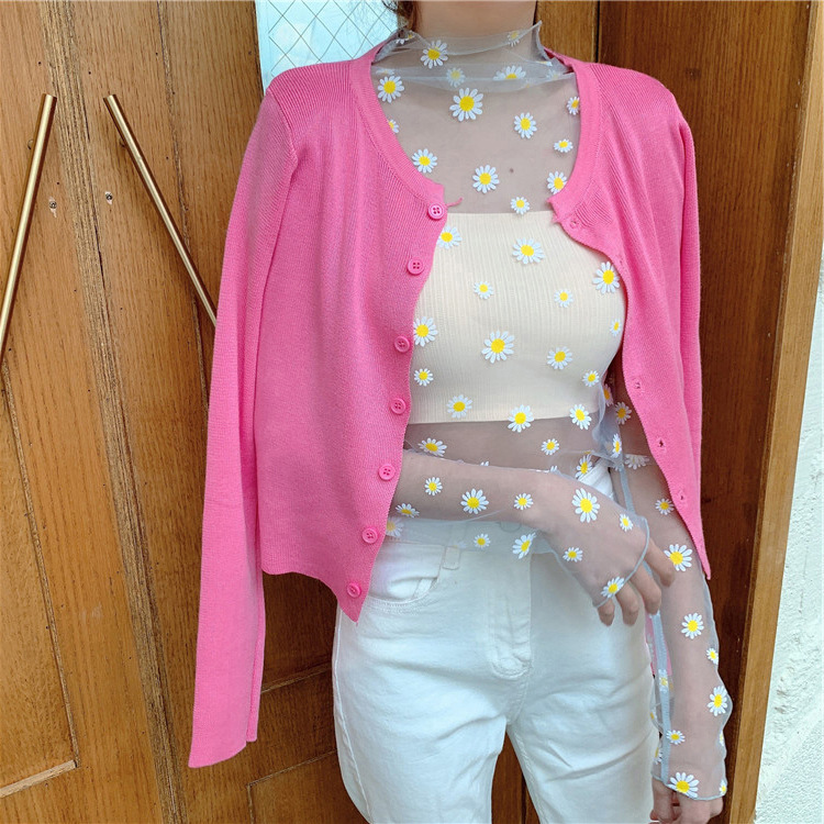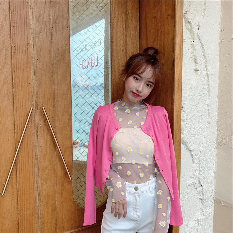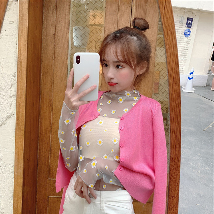 여름 한국식 2025 새 요정 반 높이 칼라 데이지 투피스 선스크린 여성용 긴팔 레이스 셔츠