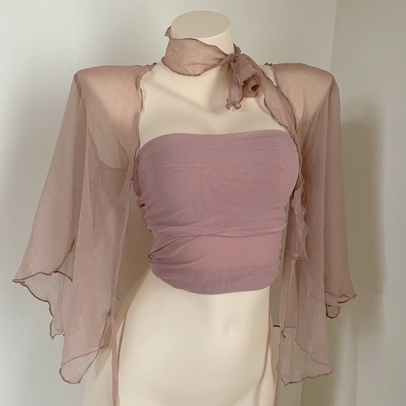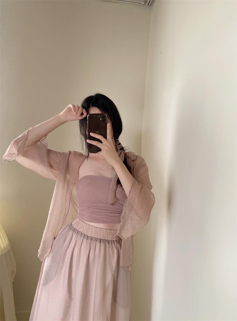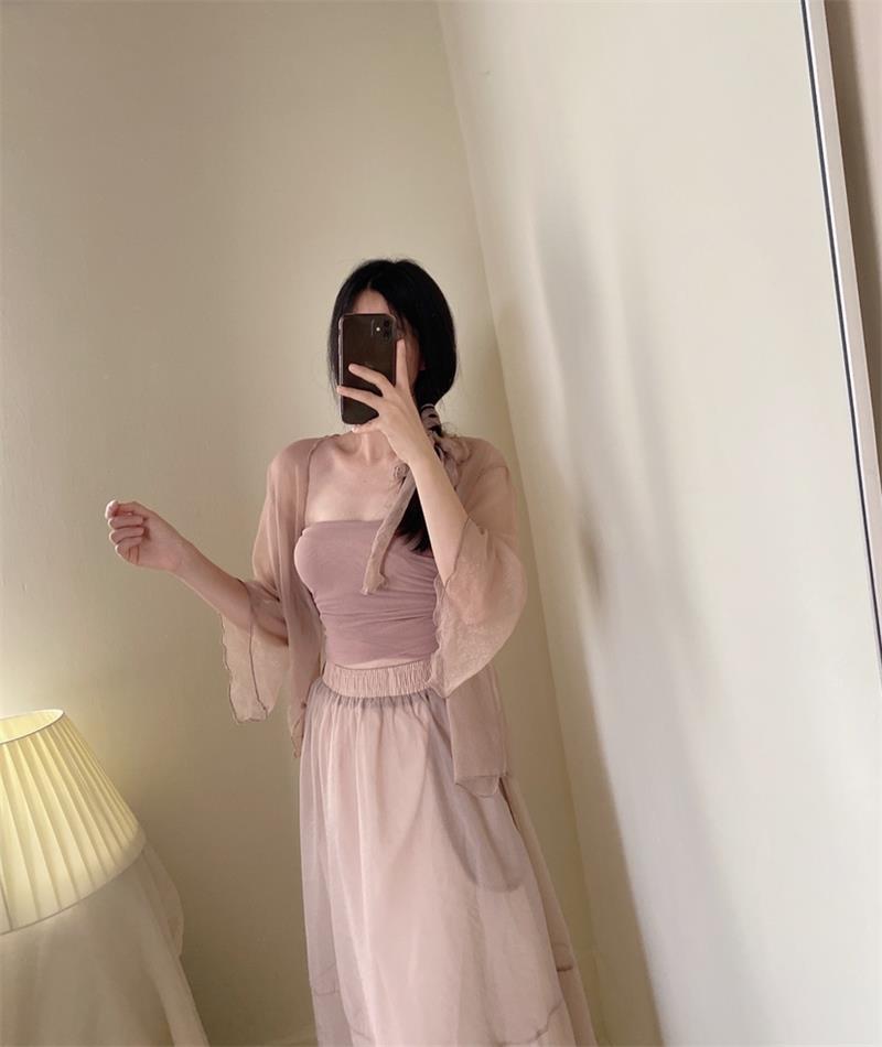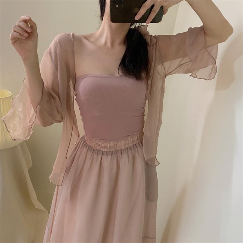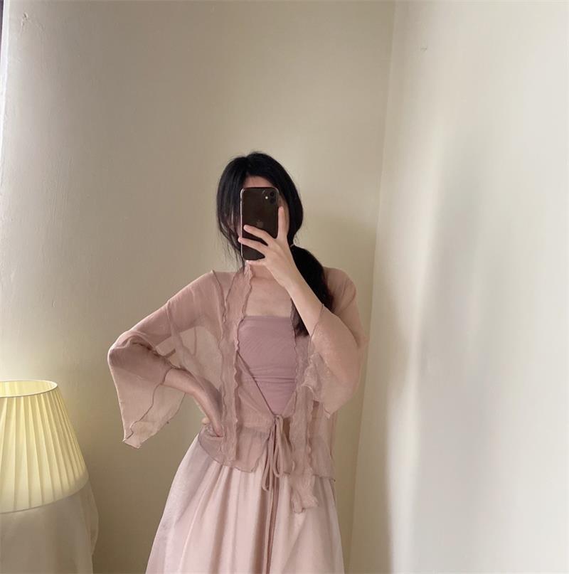 순수한 불멸의 관점 탑 선스크린 카디건 얇은 자켓 젠틀 쉬폰 셔츠 해변 휴가 외부 착용 에어컨 셔츠스토어 가기