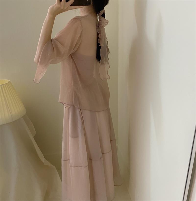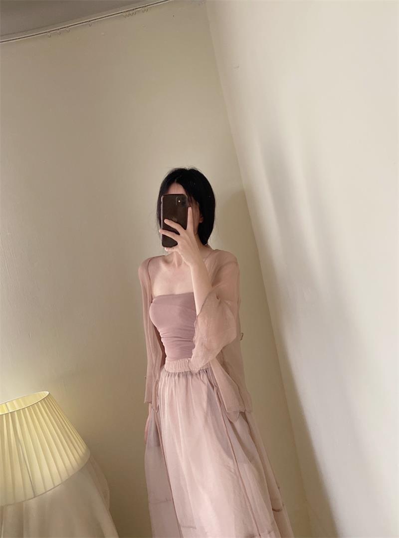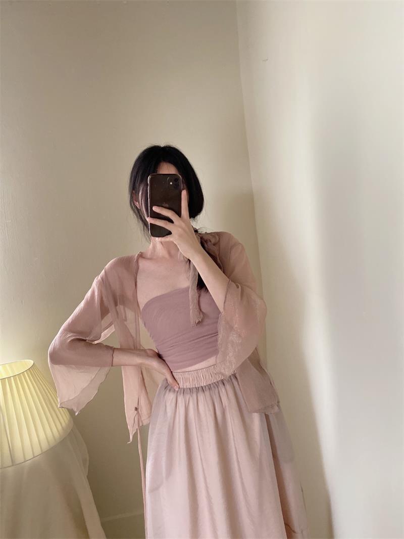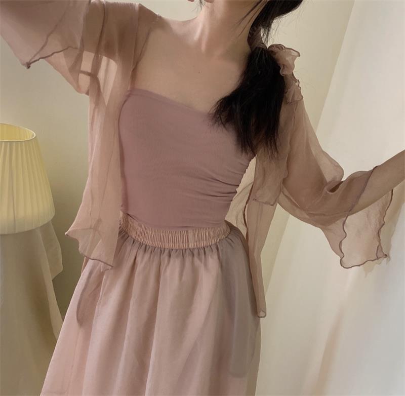 순수한 불멸의 관점 탑 선스크린 카디건 얇은 자켓 젠틀 쉬폰 셔츠 해변 휴가 외부 착용 에어컨 셔츠스토어 가기