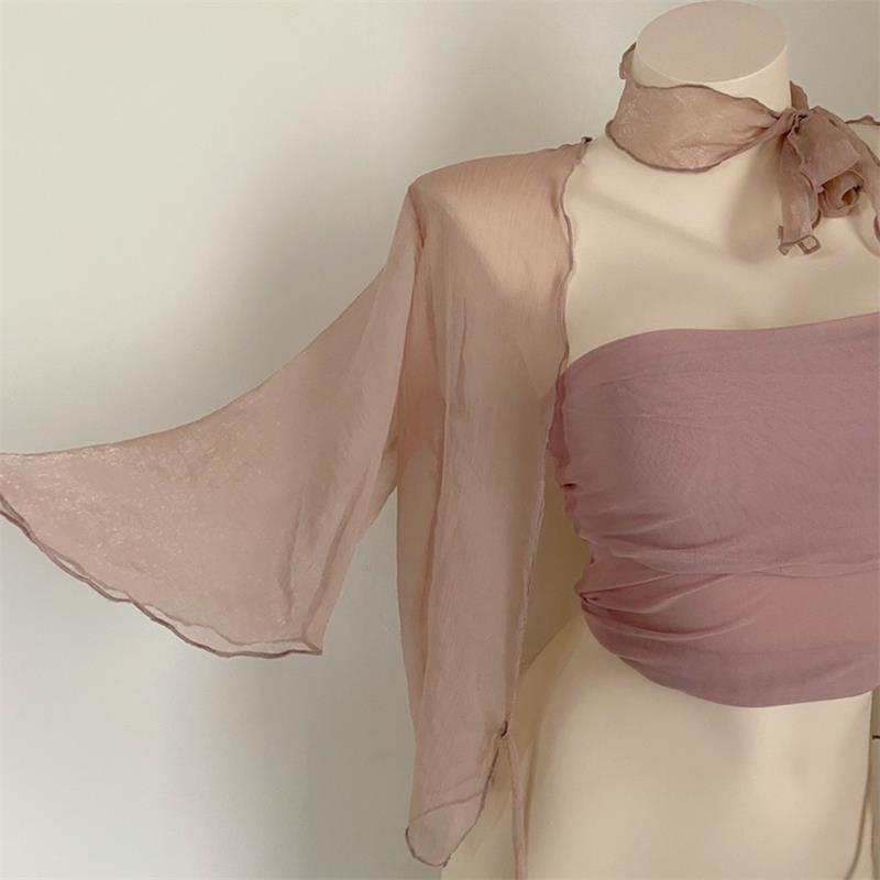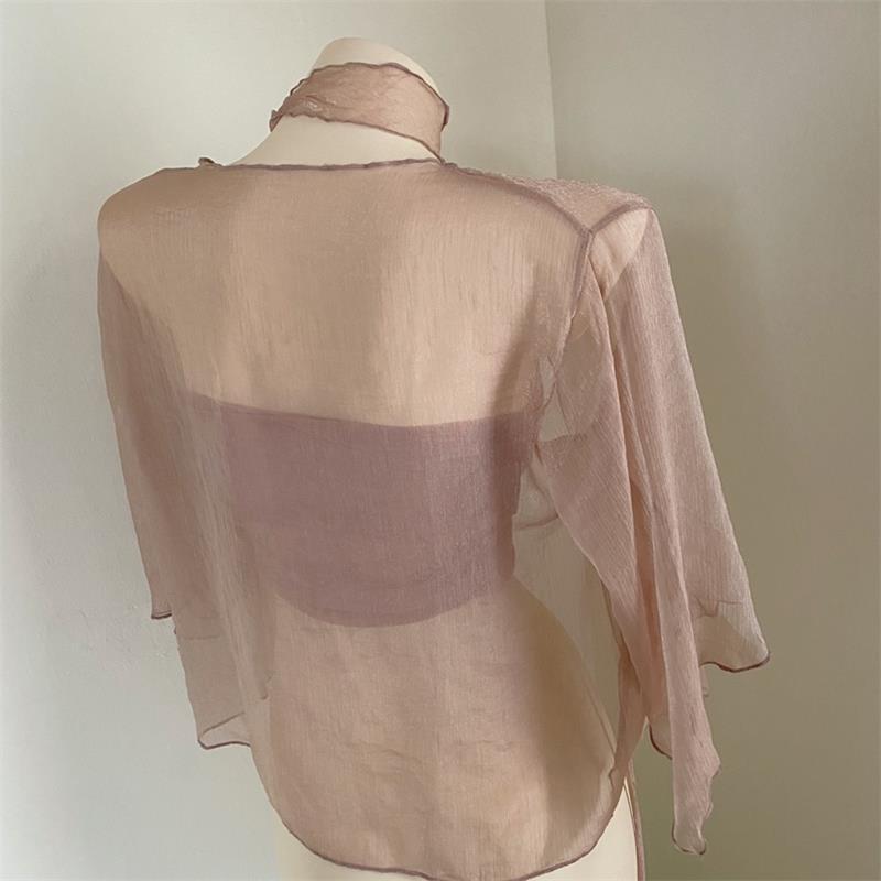 순수한 불멸의 관점 탑 선스크린 카디건 얇은 자켓 젠틀 쉬폰 셔츠 해변 휴가 외부 착용 에어컨 셔츠