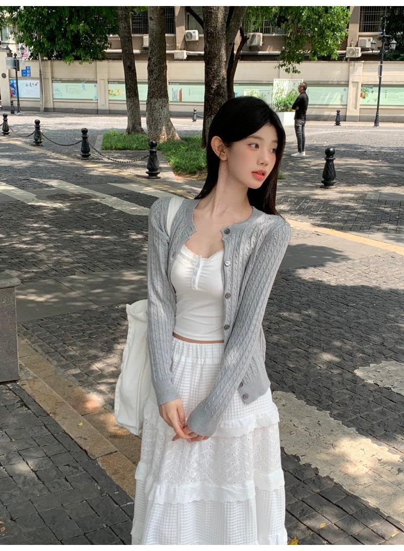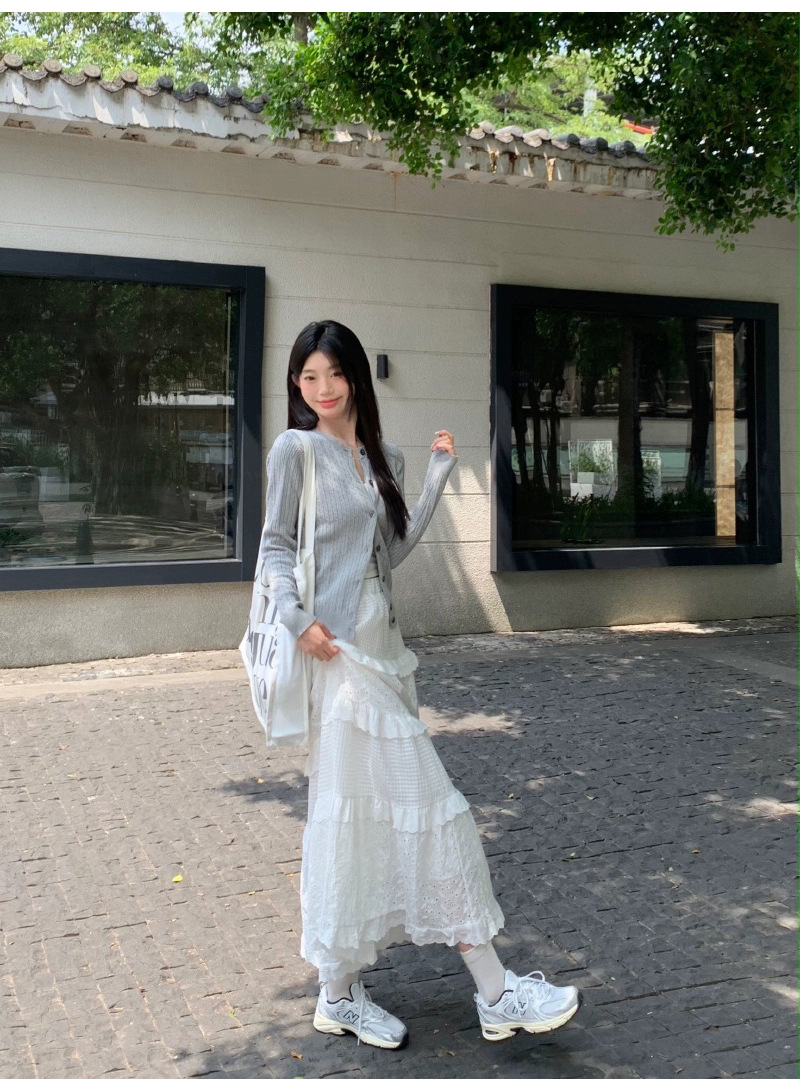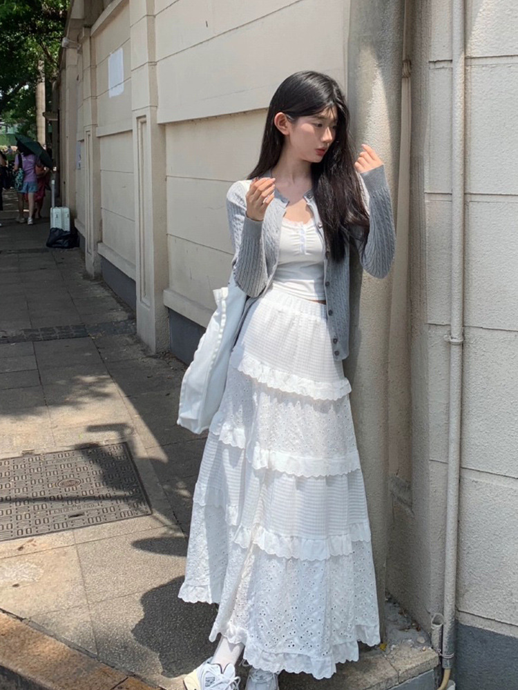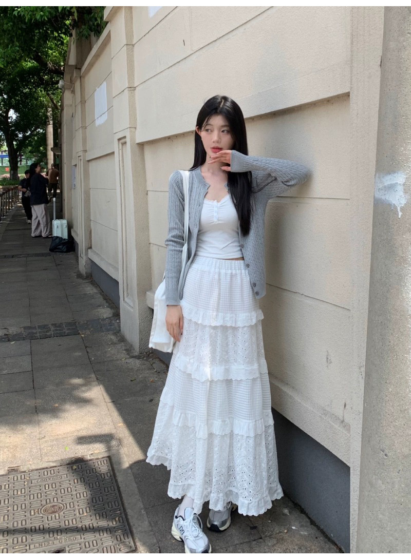 화이트 레이스 높은 허리 케이크 스커트 여성의 2025 새로운 이른 봄 디자인 센스 틈새 작은 A 라인 스커트스토어 가기