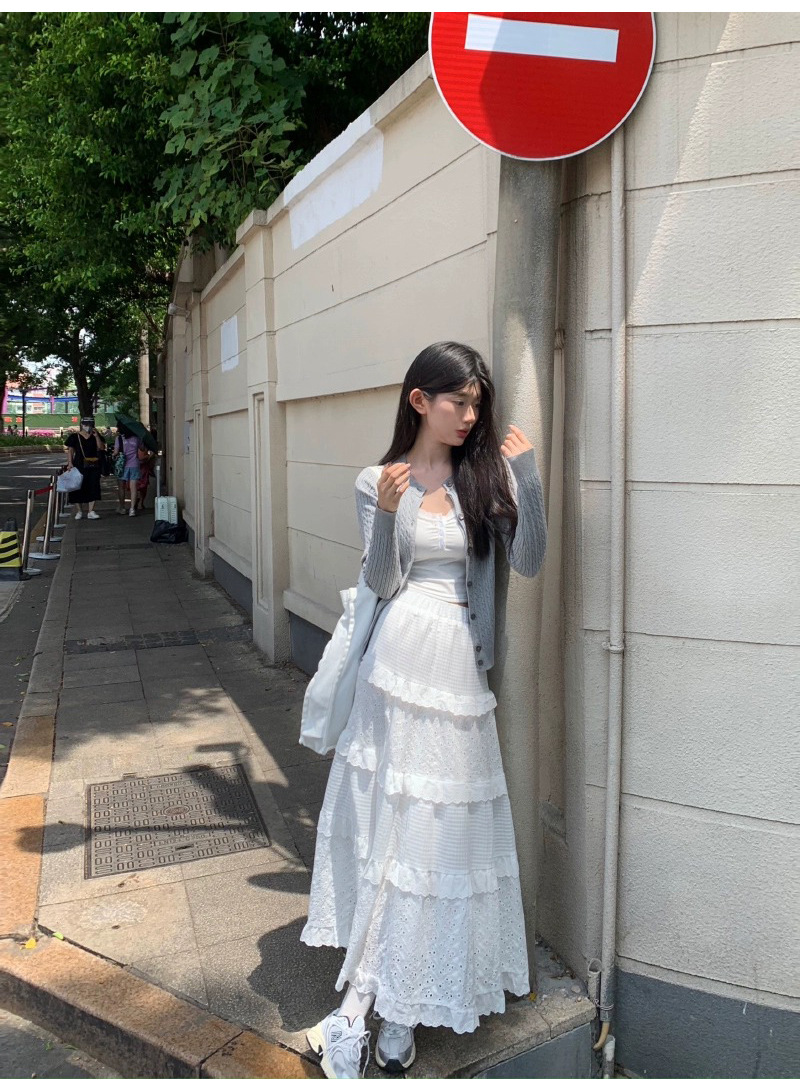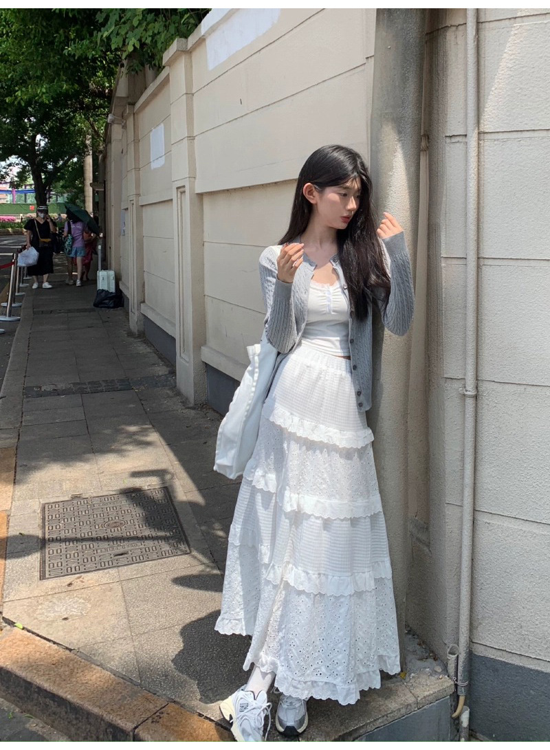 화이트 레이스 높은 허리 케이크 스커트 여성의 2025 새로운 이른 봄 디자인 센스 틈새 작은 A 라인 스커트