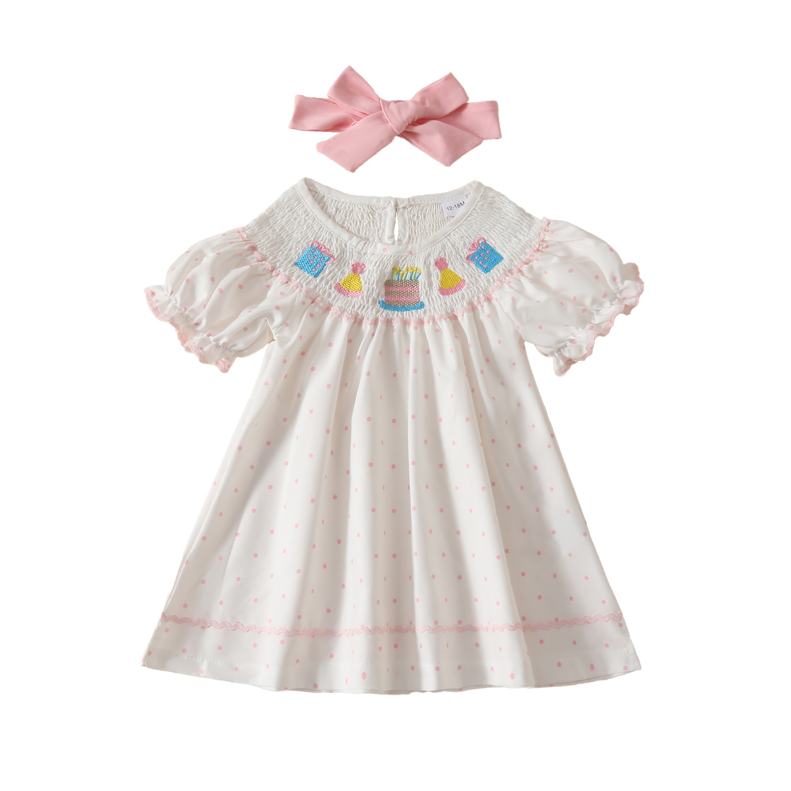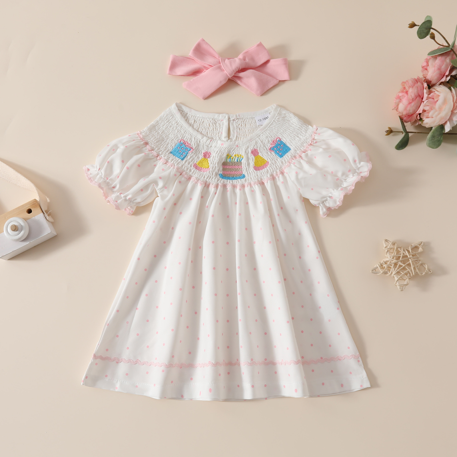 국경을 넘는 새로운 어린이 생일 자수 원피스 소녀 달콤한 물방울 무늬 여름 어린이 치마 공장 아울렛스토어 가기