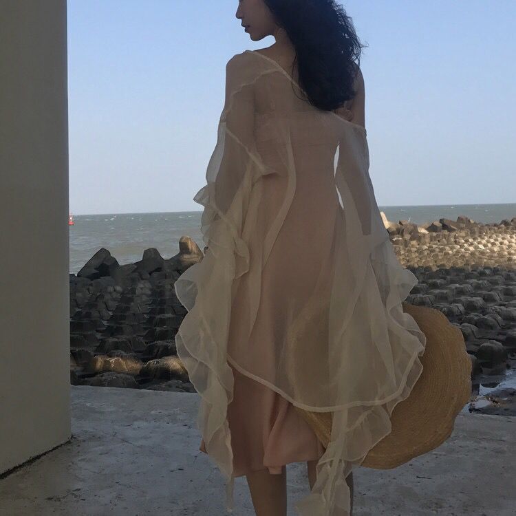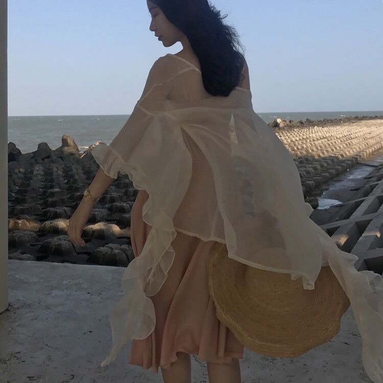 목도리 여름 외장 요정 탑 해변 휴가 러플 요정 태양 스크리닝 탑 요정 작은 카디건스토어 가기