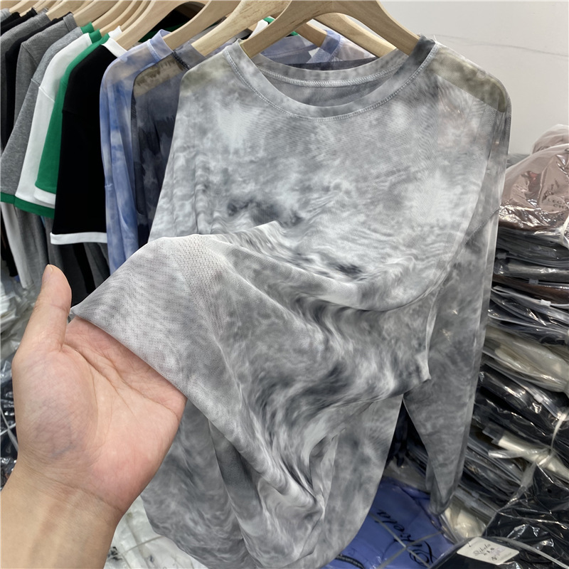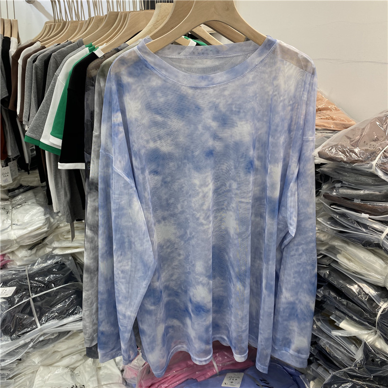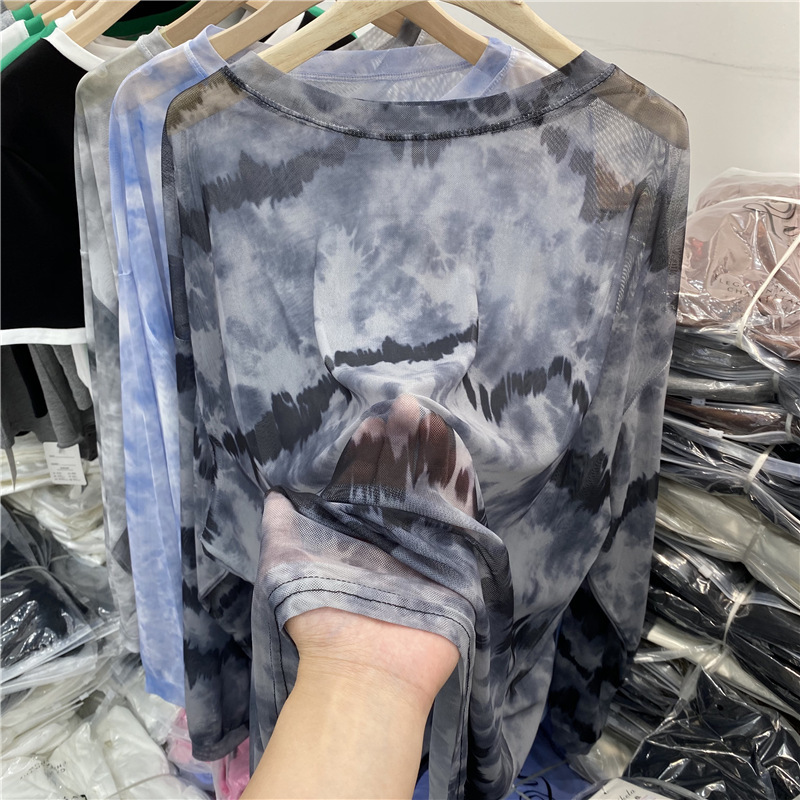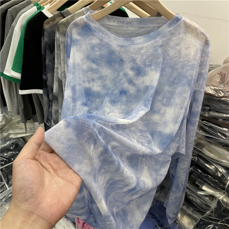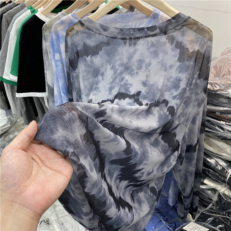 유럽의 얇은 잉크 페인팅 메쉬 긴팔 티셔츠 에어컨 블라우스 탑 여성의 2025 봄 새로운 느슨한 태양 보호 의류스토어 가기
