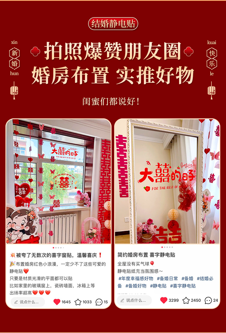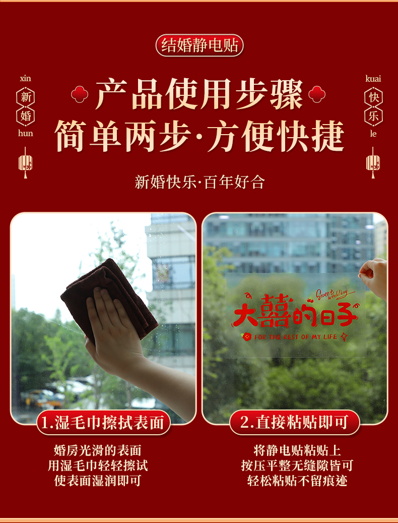 행복 한 단어 정전기 스티커 웨딩 창 유리 문 투명 창 그릴 스티커 웨딩 룸 레이아웃 장식 웨딩 용품스토어 가기