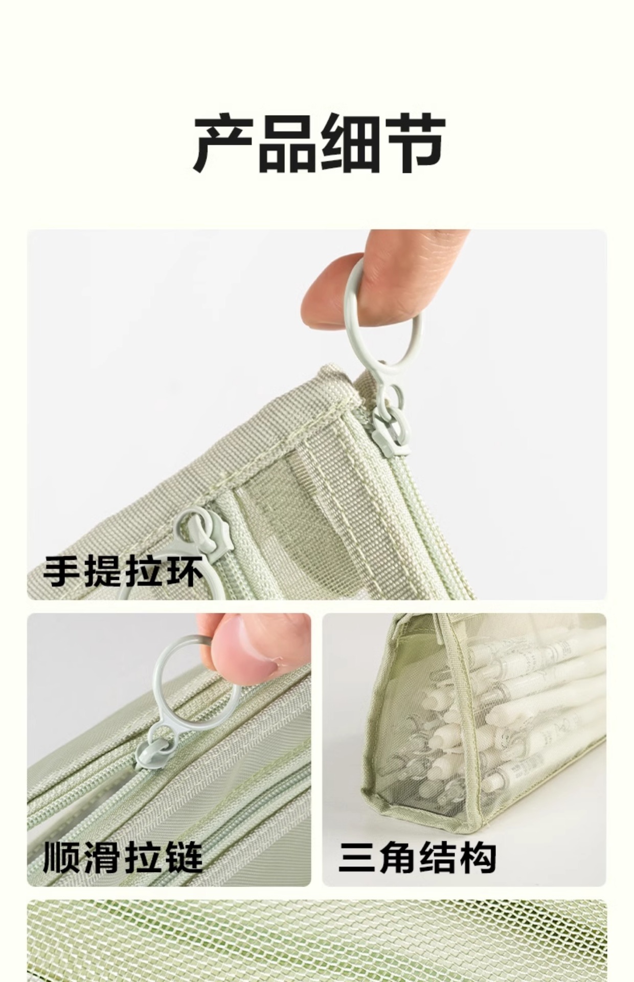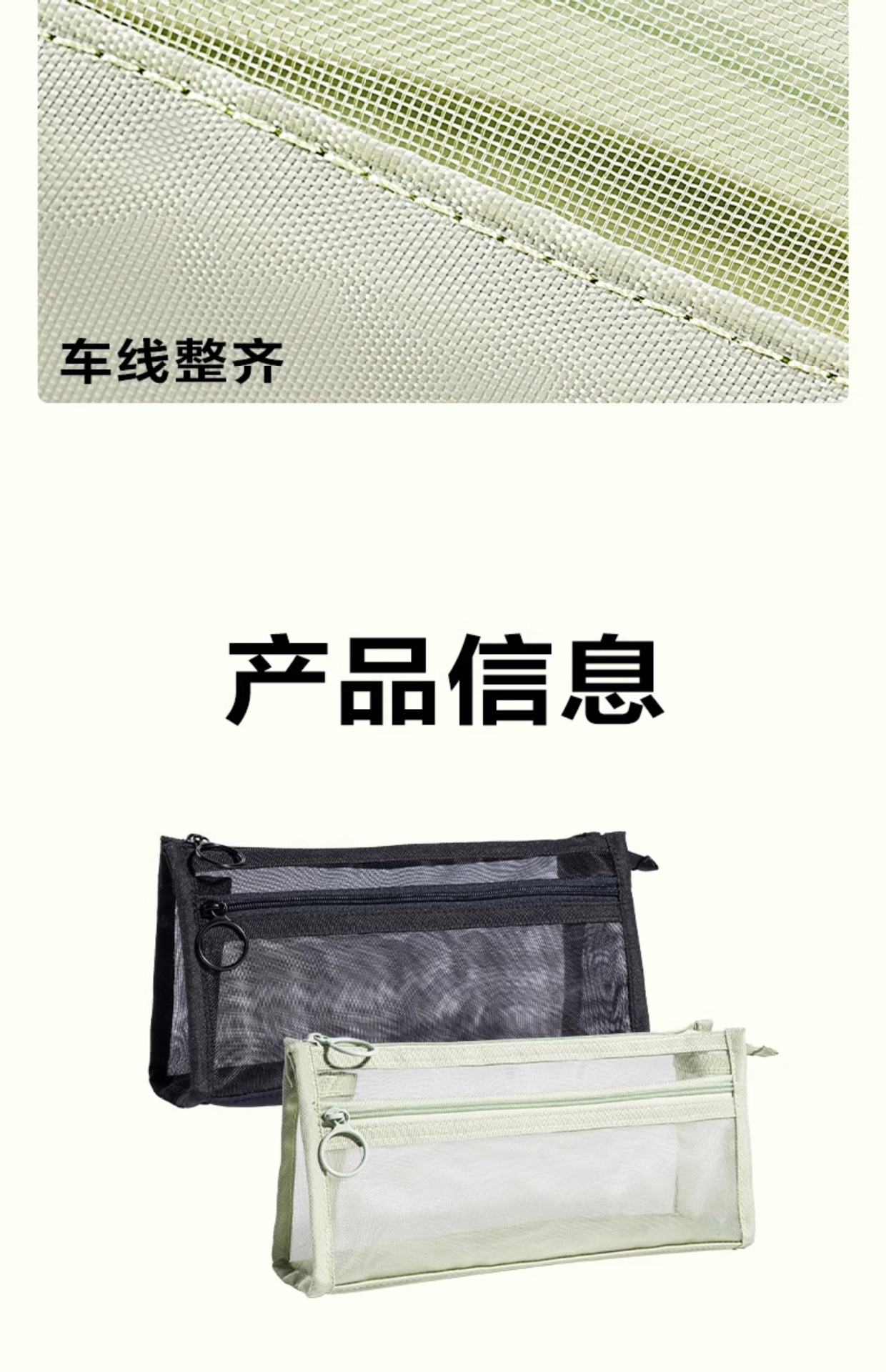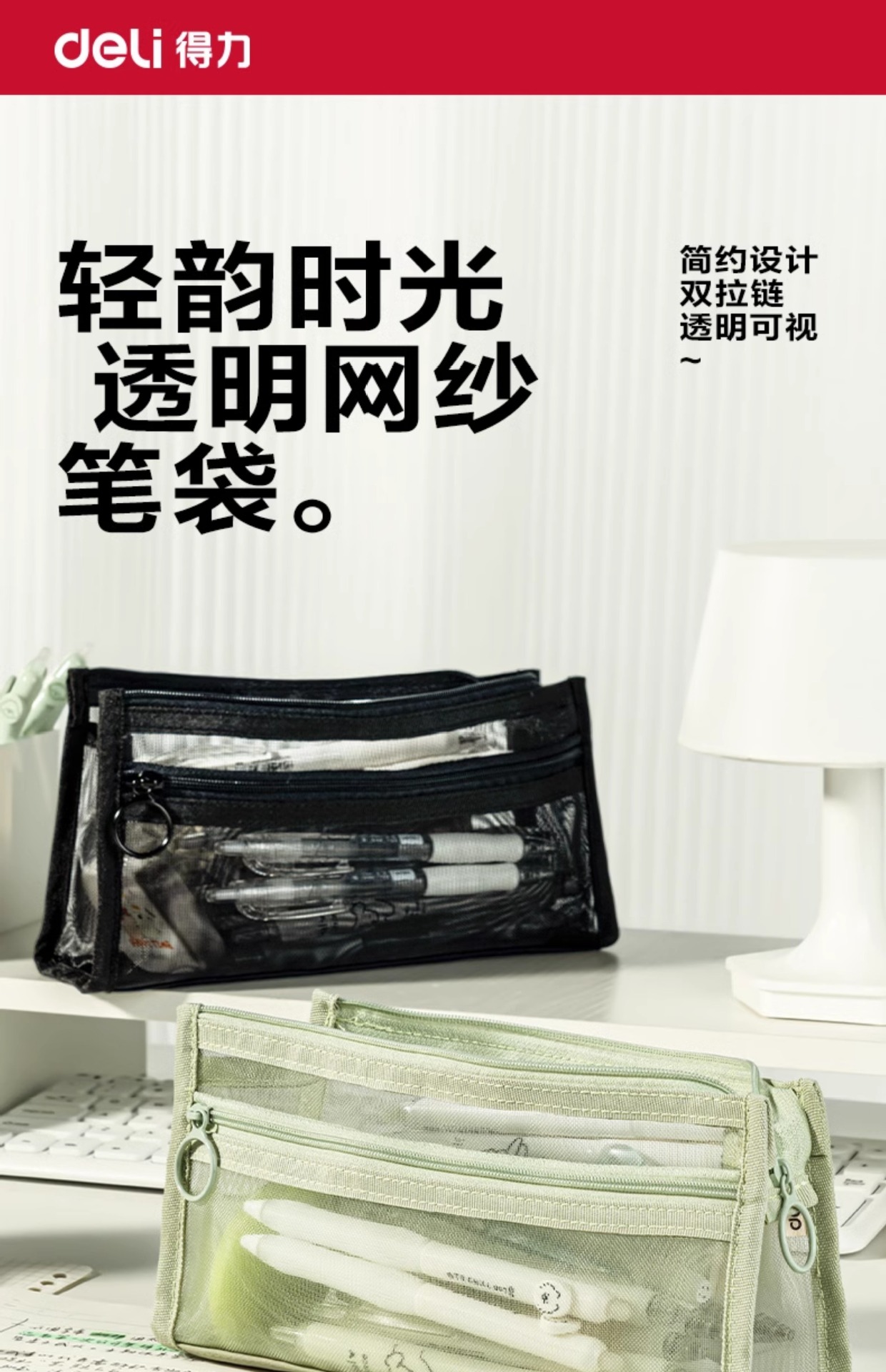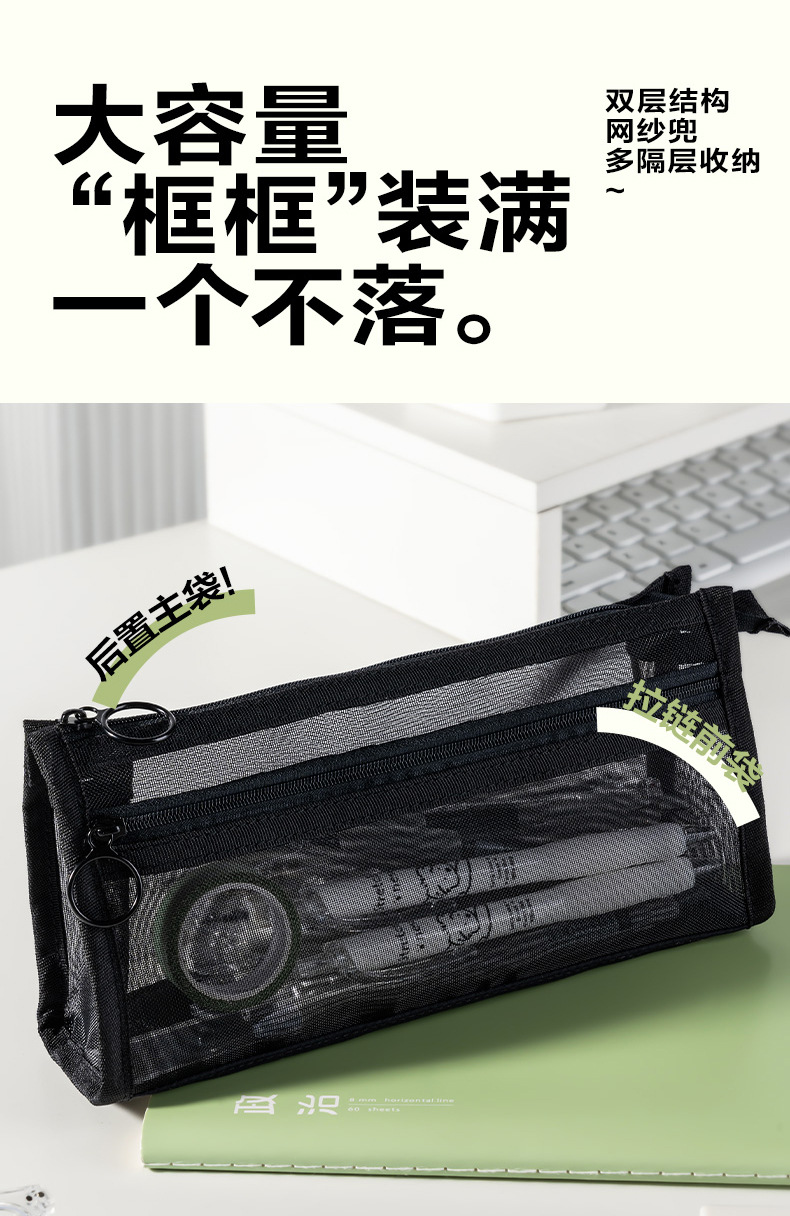 델리 연필 케이스 투명 삼각형 메쉬 원사 대용량 높은 색상 값 INS 스타일 간단한 더블 레이어 학생 시험 지퍼 텍스트