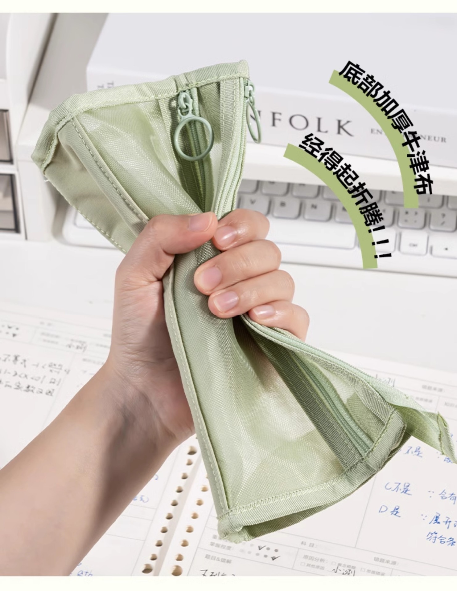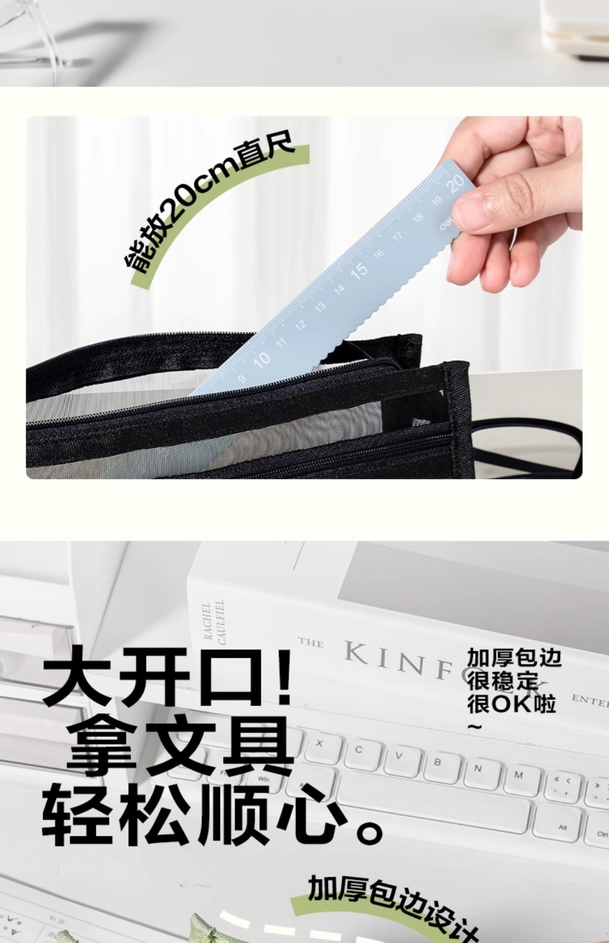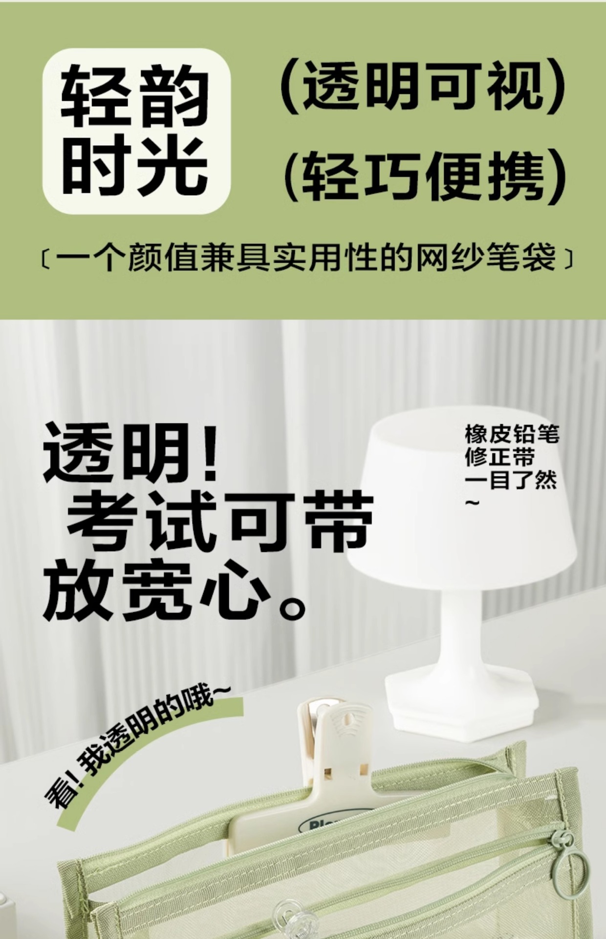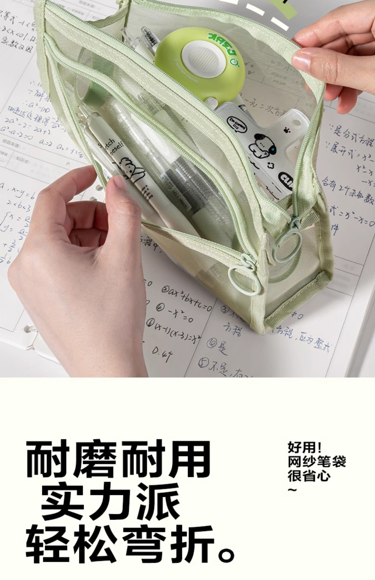 델리 연필 케이스 투명 삼각형 메쉬 원사 대용량 높은 색상 값 INS 스타일 간단한 더블 레이어 학생 시험 지퍼 텍스트