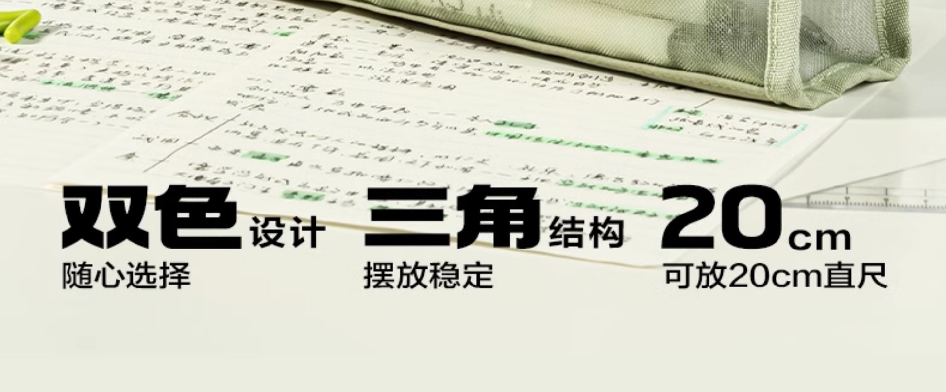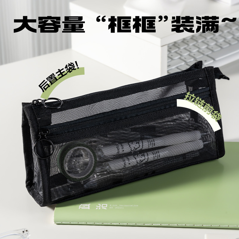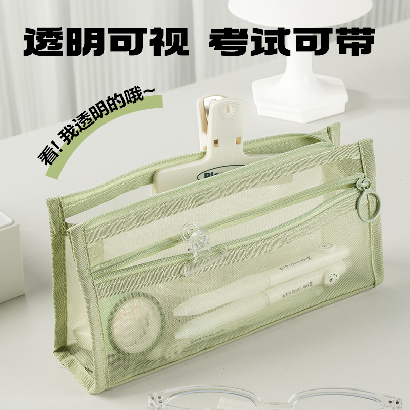 델리 연필 케이스 투명 삼각형 메쉬 원사 대용량 높은 색상 값 INS 스타일 간단한 더블 레이어 학생 시험 지퍼 텍스트스토어 가기
