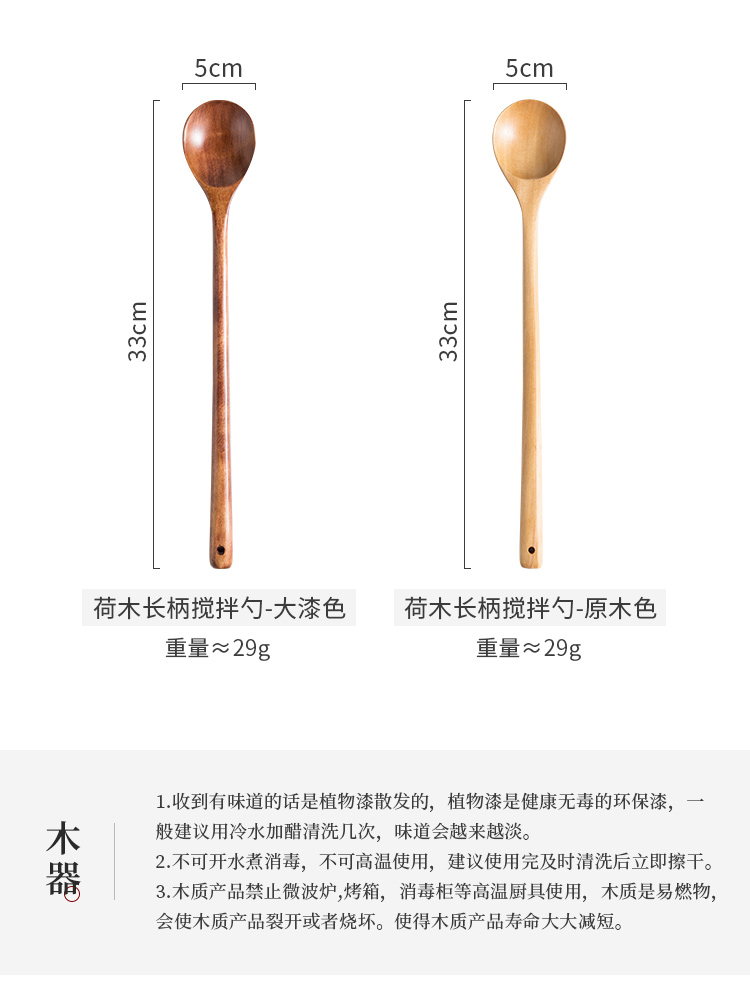 • 연나무 손잡이가 긴 믹싱스푼 - 대형 래커색