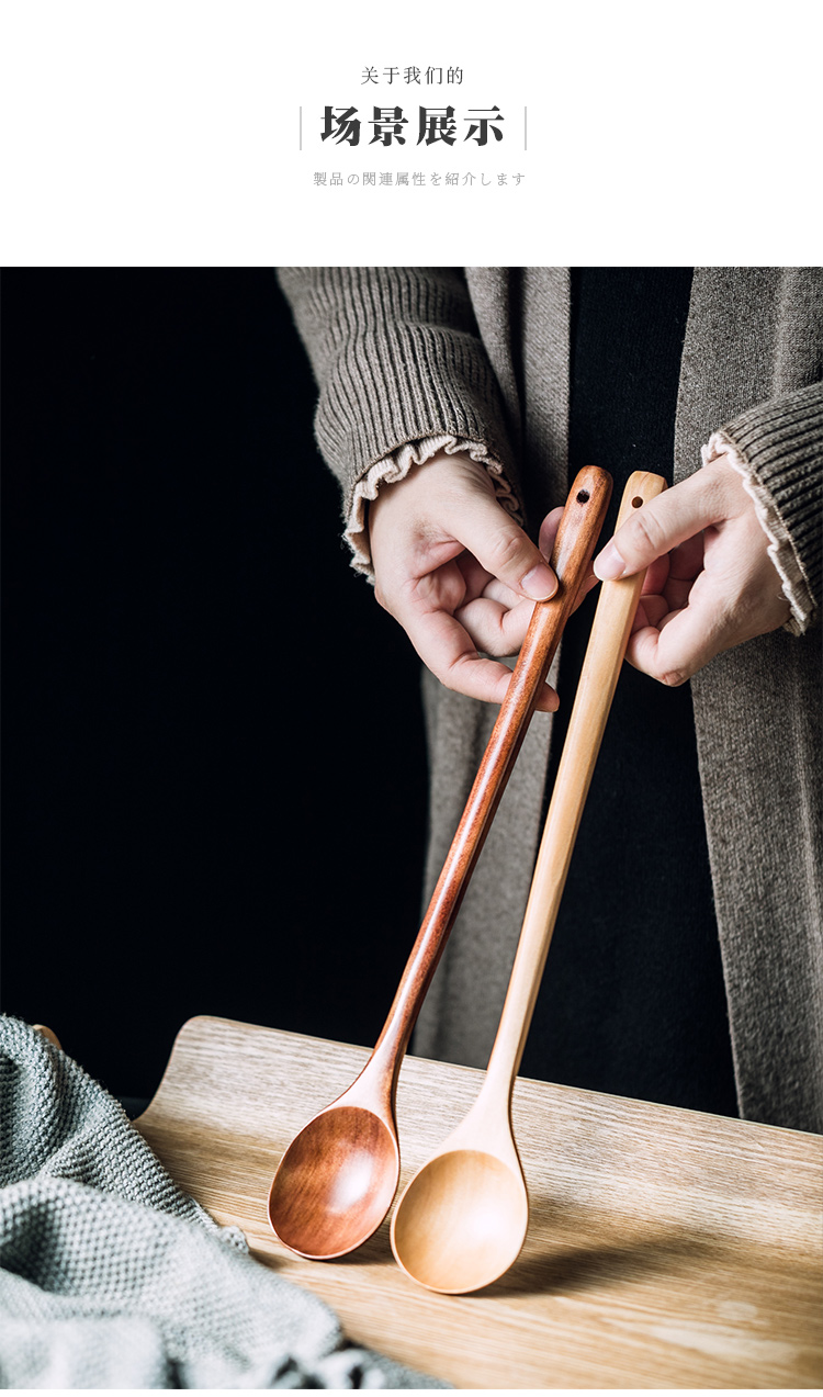 나무 숟가락 믹싱 스푼을 사용하여 국수 스무디 스푼 확장 커피 스푼 나무 숟가락 가게 창조적 인 작은 긴 손잡이 숟가락 숟가락을 요리합니다.