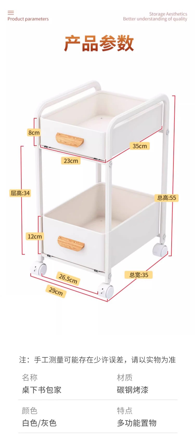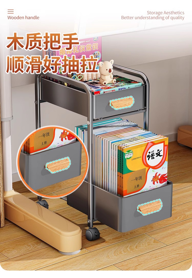스쿨백 스토리지 랙 북 아티팩트 스낵 카트 서랍 스토리지 랙 아래 바퀴가 달린 이동식 가정용 책상