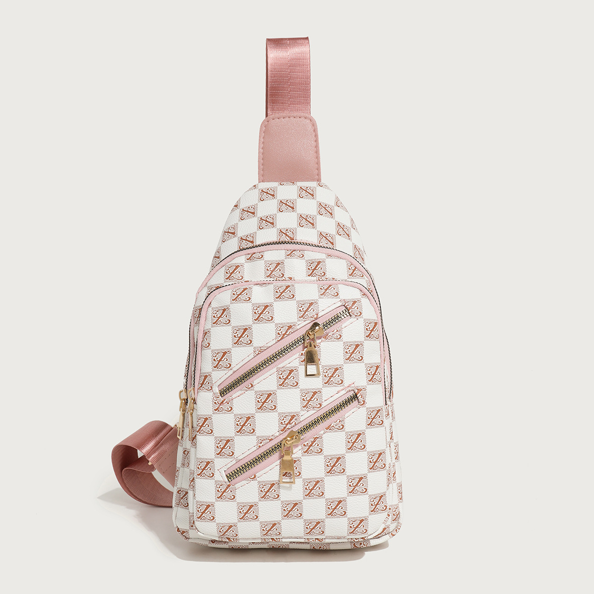 外贸格子印花休闲胸包2024新品women bags时尚运动风大容量斜肩包