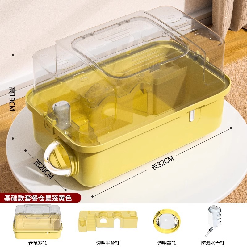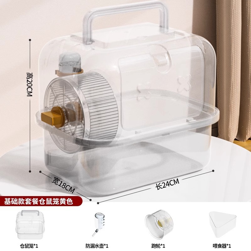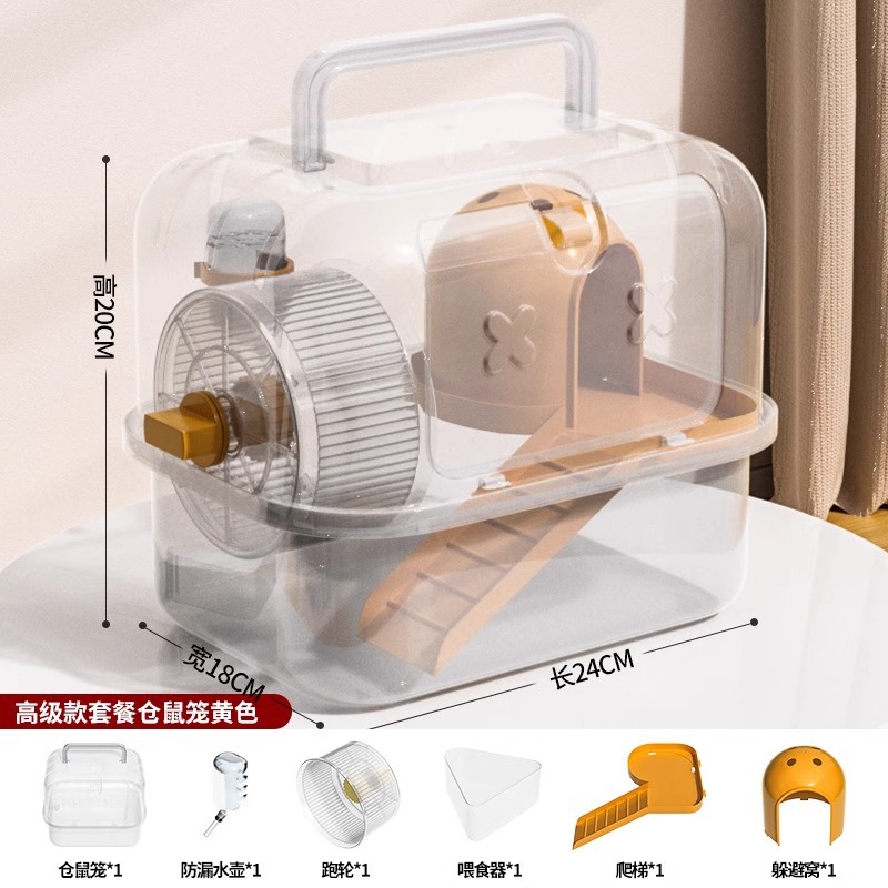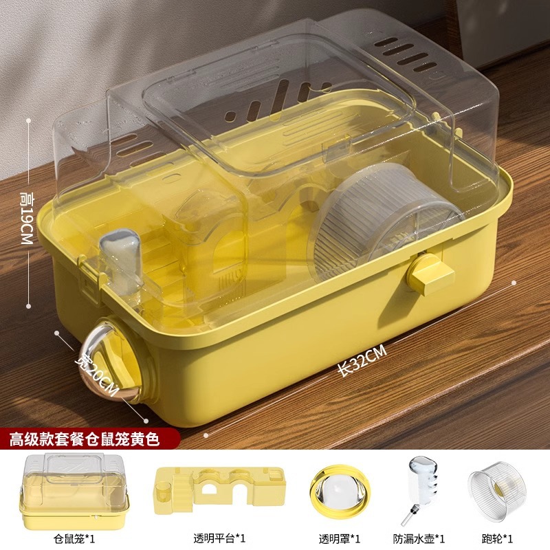 • 고급스러운 쥐 빌라(투명 플랫폼 + 누수 방지 주전자 + 런닝 휠) 노란색