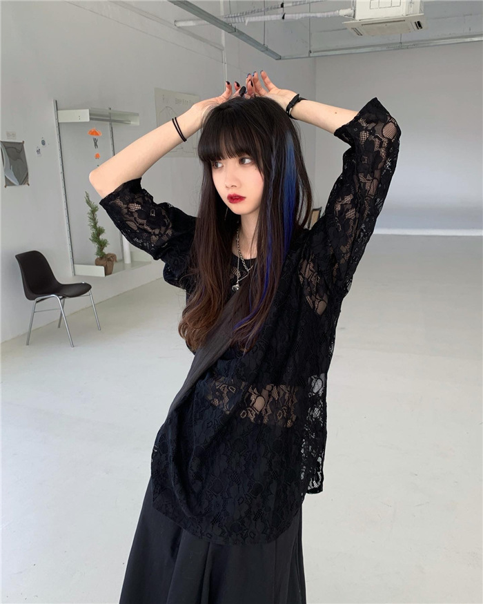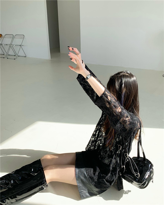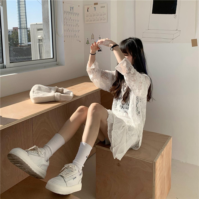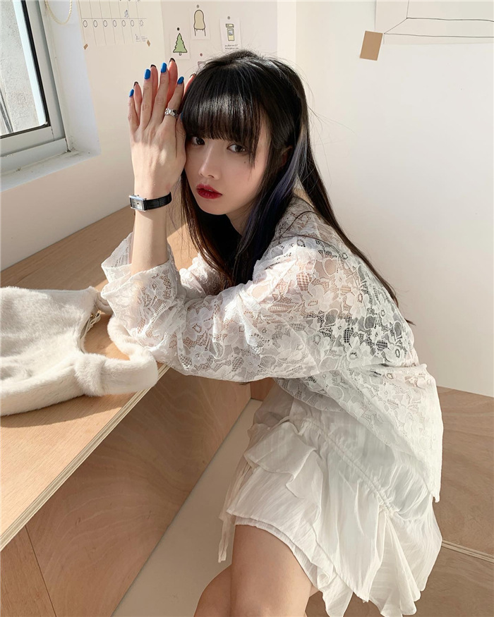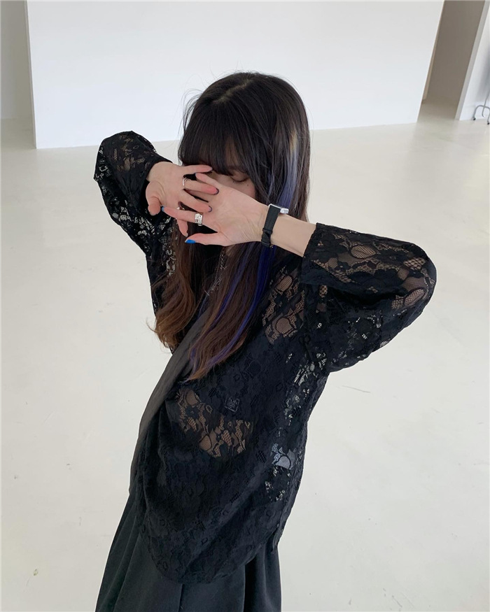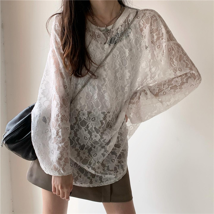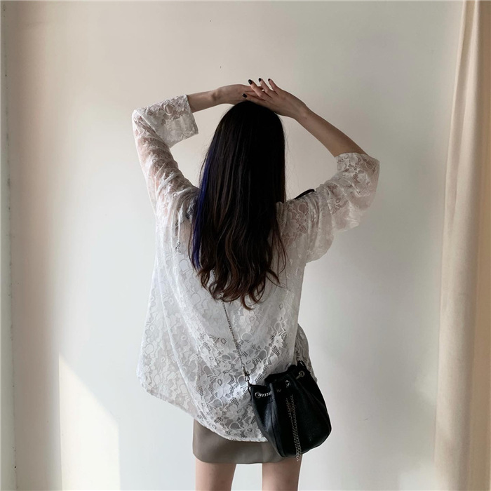 레이스 셔츠 여성의 2025 새로운 여름 얇은 선 스크린 블라우스 탑 슈퍼 요정 우아한 서양 스타일 작은 셔츠 베이스 셔츠스토어 가기