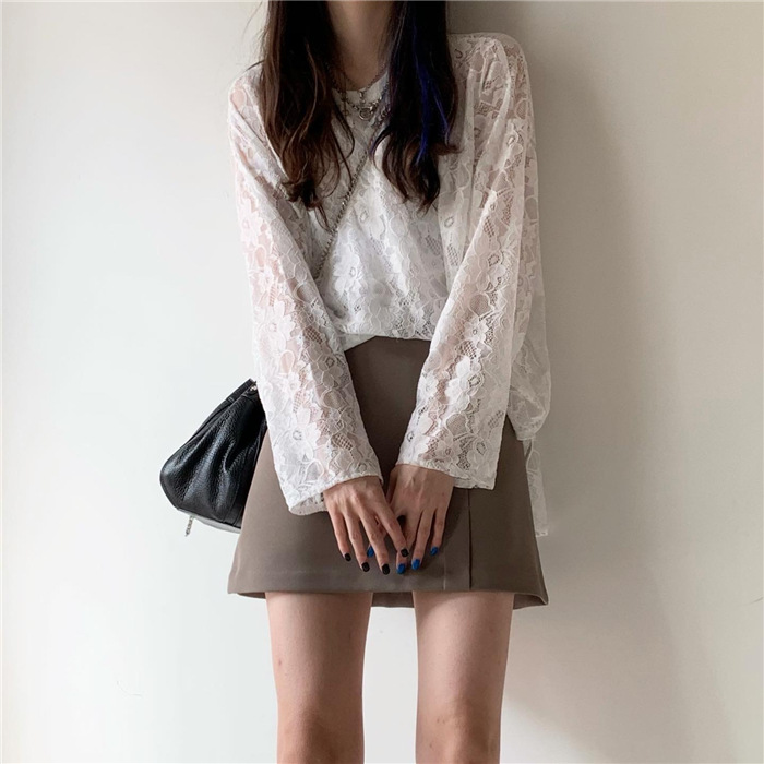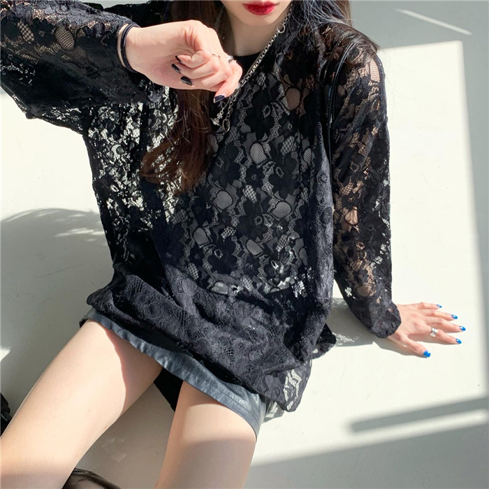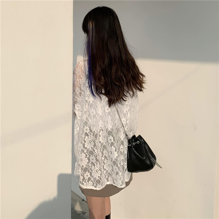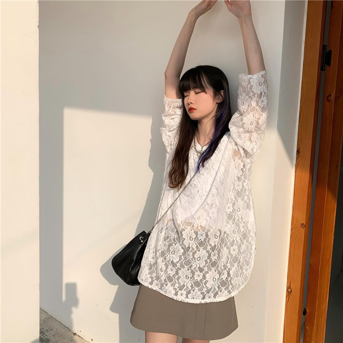 레이스 셔츠 여성의 2025 새로운 여름 얇은 선 스크린 블라우스 탑 슈퍼 요정 우아한 서양 스타일 작은 셔츠 베이스 셔츠
