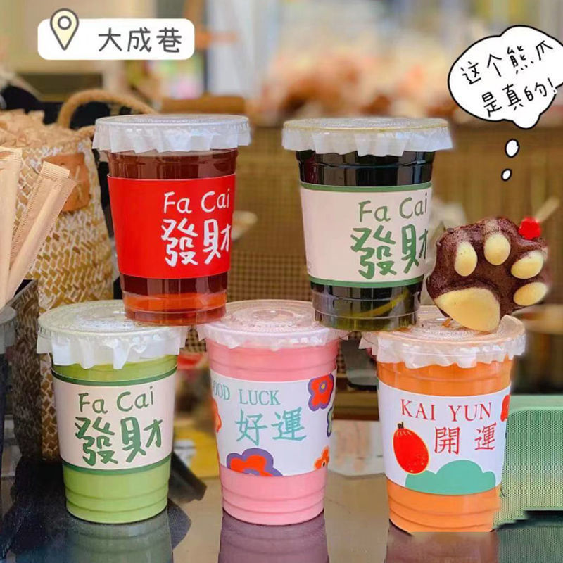 플라스틱 커피 컵 Ins 스타일 인터넷 유명한 우유 차 컵 뚜껑 포장 테이크 아웃 컵 투명한 일회용 차가운 음료