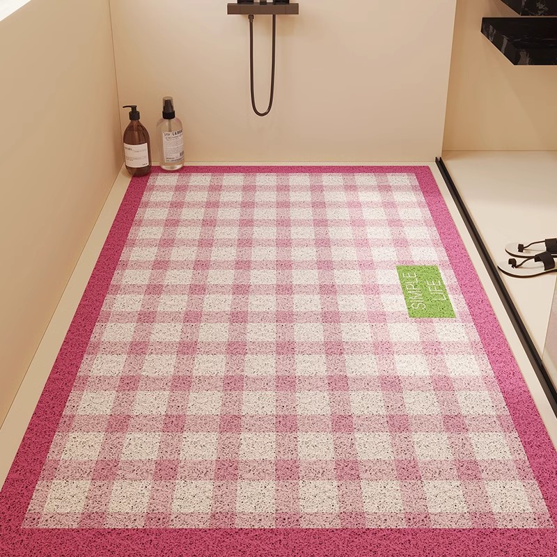 • 레이스 블루 핑크 실크 서클 욕실 매트